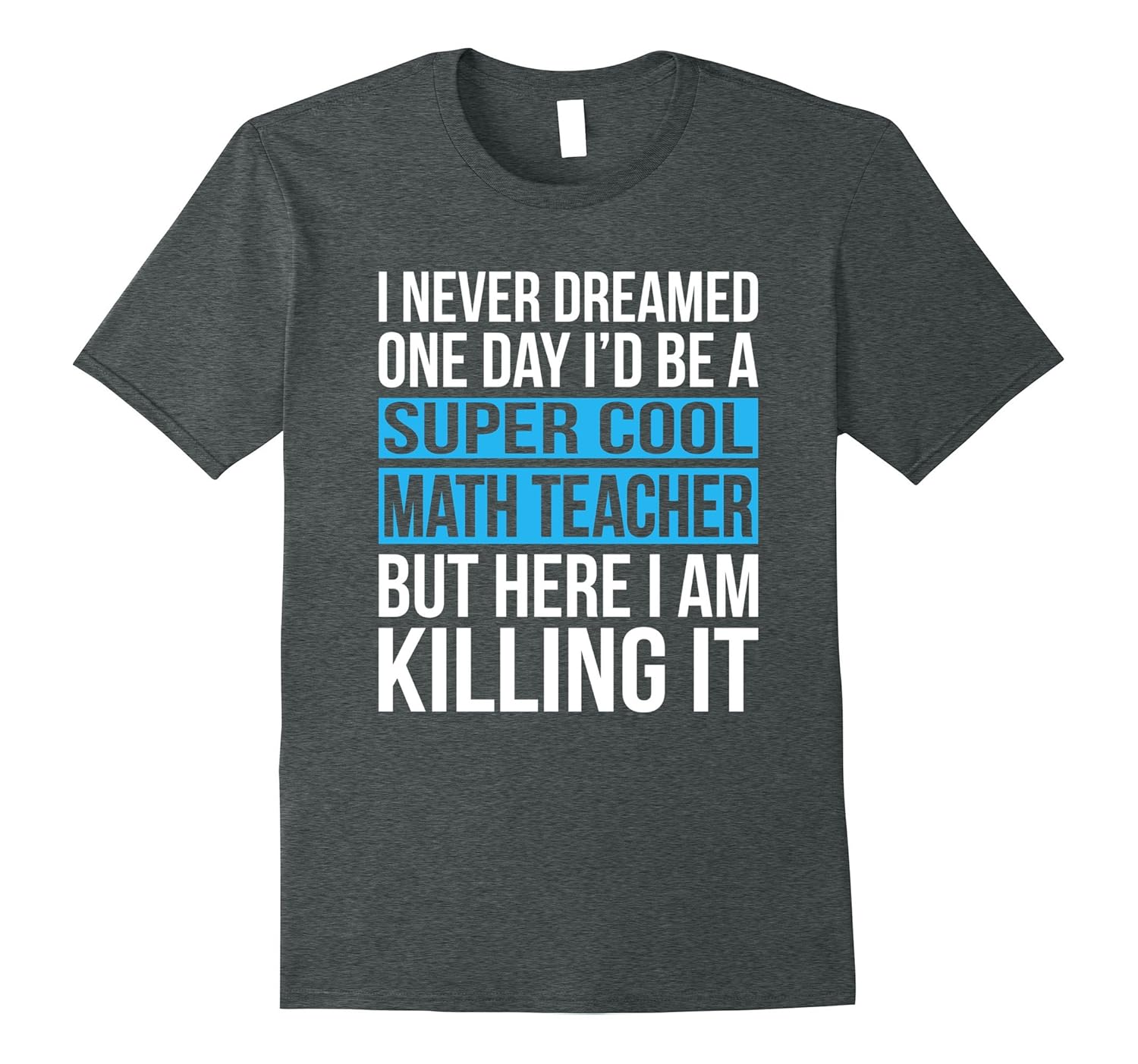 Solid colors: 100% Cotton; Heather Grey: 90% Cotton, 10% Polyester; All Other Heathers: 65% Cotton, 35% Polyester; Imported; Machine wash cold with like colors, dry low heat; I never dreamed one day Id be a super cool math Teacher but here I am killing it. Gift for algebra, Geometry Calculus school education teachers.; Adult sizes for men and women. Please see color options. Great Christmas present, birthday, Mothers day, or Fathers day gift.; Lightweight, Classic fit, Double-needle sleeve and bottom hem