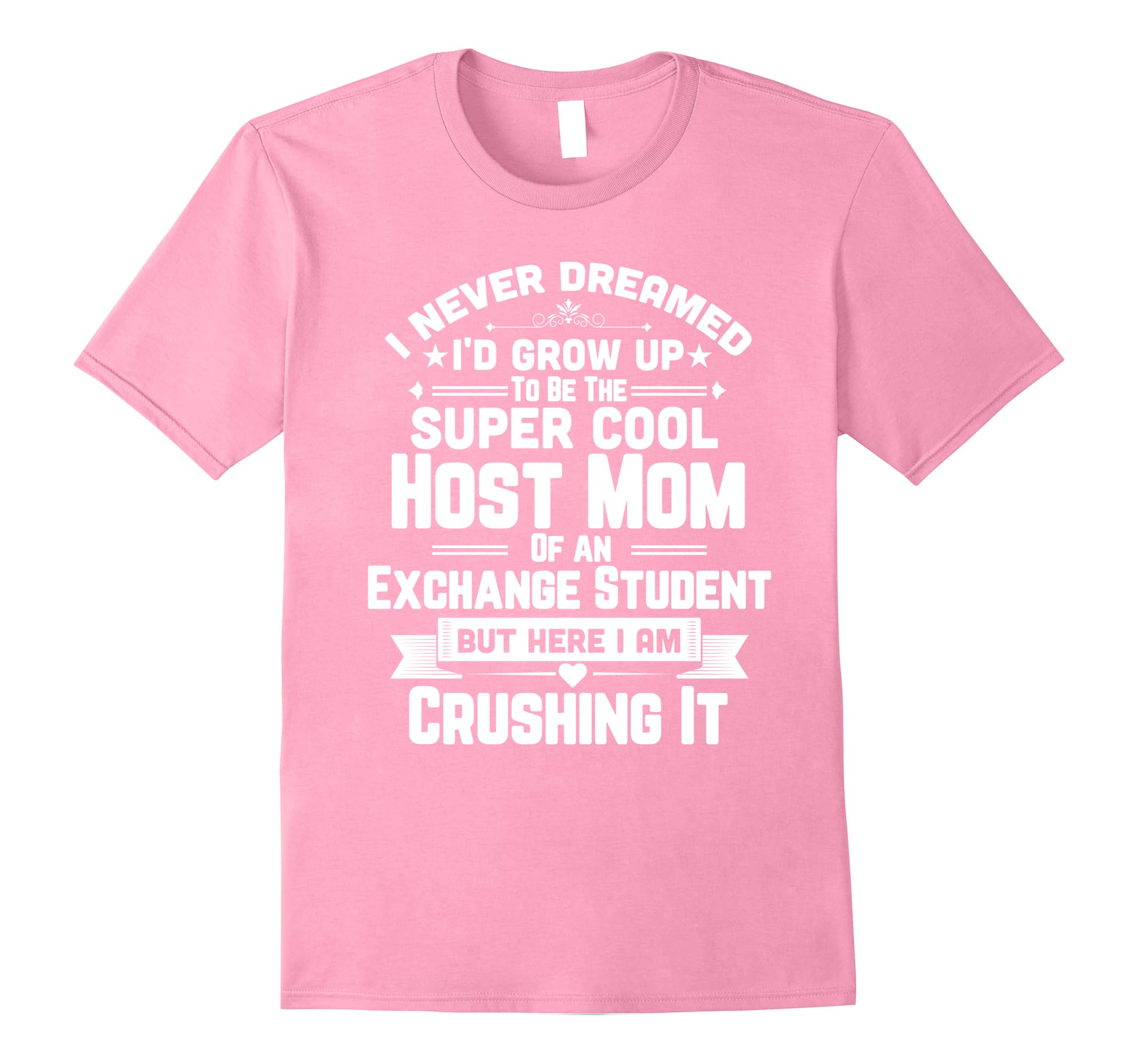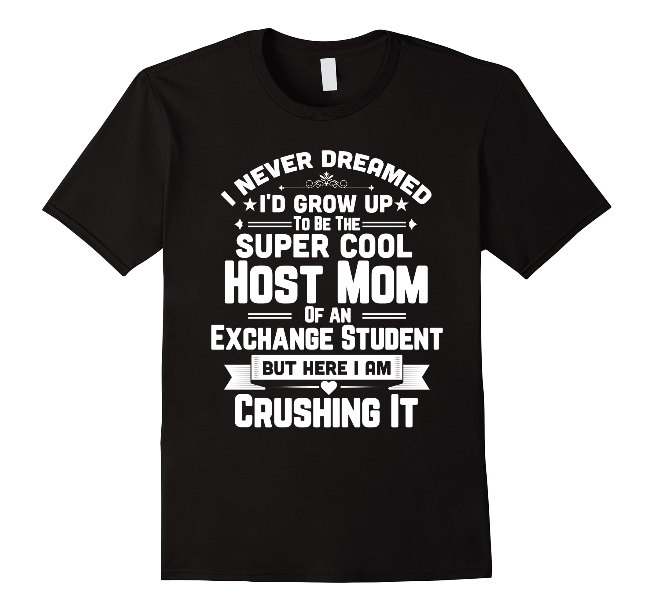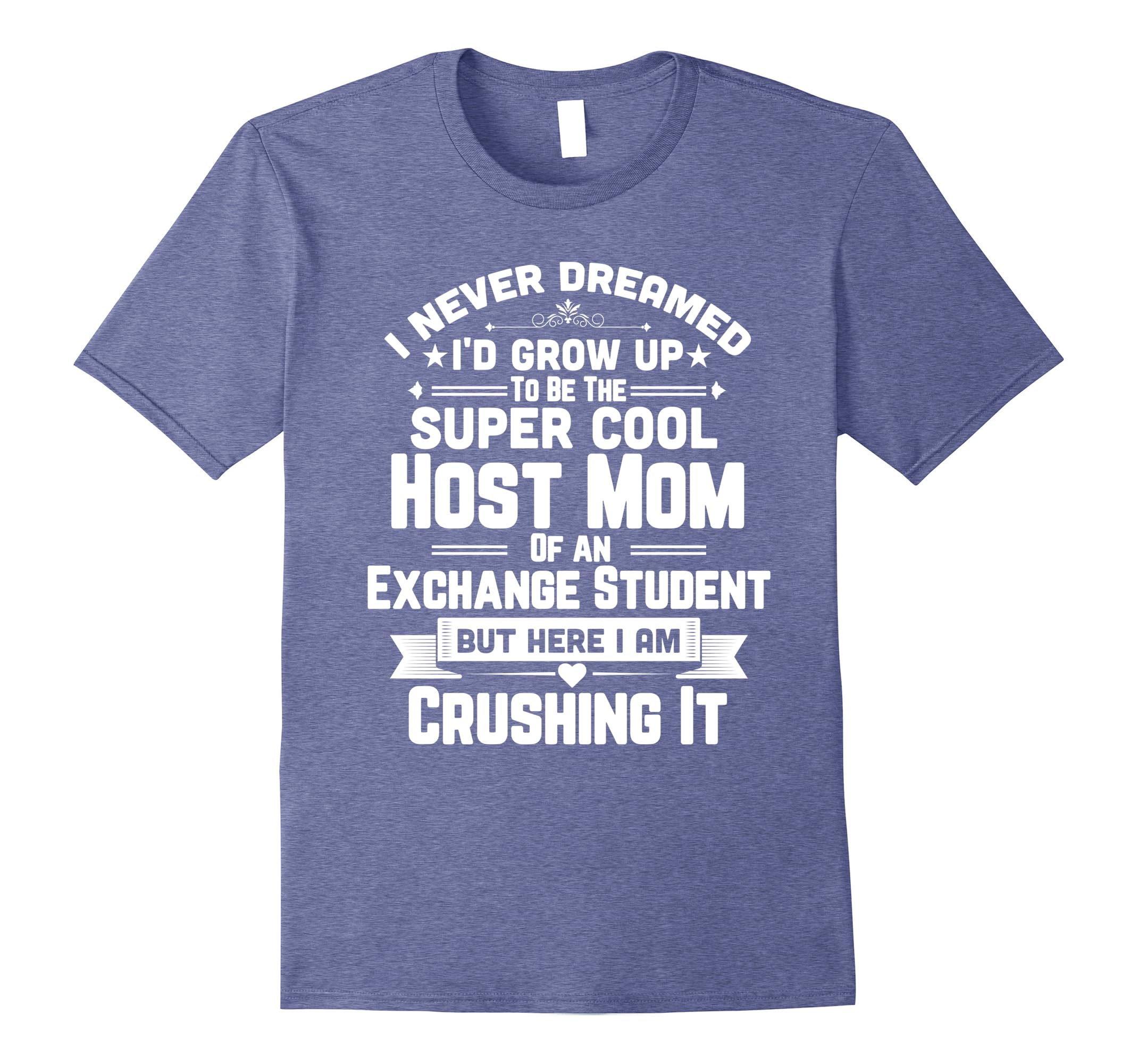 Solid colors: 100% Cotton; Heather Grey: 90% Cotton, 10% Polyester; All Other Heathers: 50% Cotton, 50% Polyester; Imported; Machine wash cold with like colors, dry low heat; I Never Dreamed Id Grow Up To Be The Super Cool Mom Of An Exchange Student But Here I Am Crushing It Funny T-Shirt. Great parent shirt. If youre looking for an awesome shirt to celebrate your exchange student this is the shirt for you.; Makes an excellent gift for the wonderful family hosting a Foreign Exchange Student. Great way to spread the word about the benefits of the exchange program. Youll love the conversations that you have wearing this shirt.; Lightweight, Classic fit, Double-needle sleeve and bottom hem
