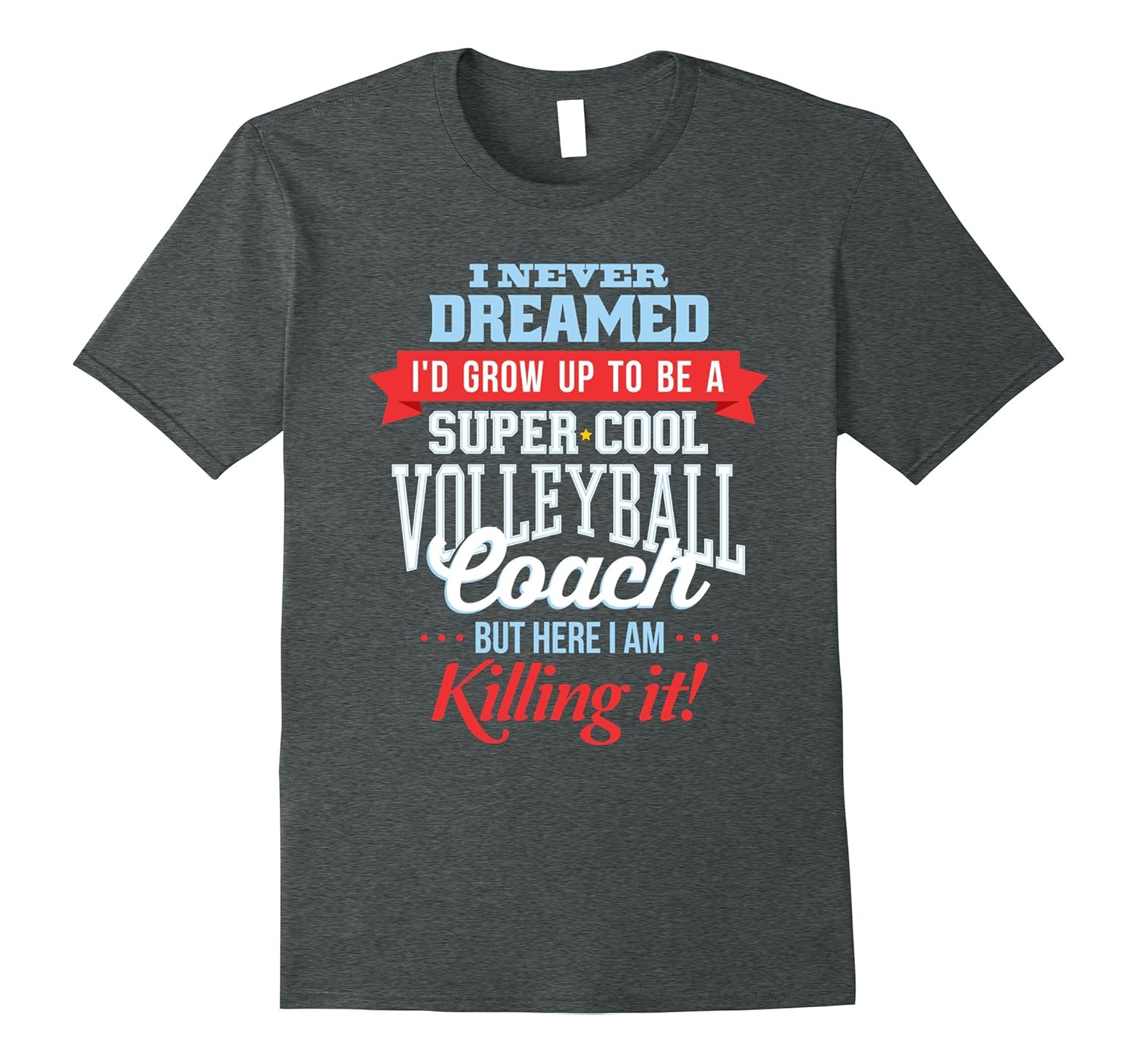 Solid colors: 100% Cotton; Heather Grey: 90% Cotton, 10% Polyester; All Other Heathers: 65% Cotton, 35% Polyester, Imported, Machine wash cold with like colors, dry low heat, A funny volleyball t shirt for volleyball coaches, moms, players and athletes. Wear this sport tee shirt to volleyball games, leagues and tournaments. I Never Dreamed I”d Grow Up To Be A Super Cool Volleyball Coach But Here I Am Killing It Funny Saying Shirt, Volleyball Novelty Graphic Tees – Makes great volleyball coach gifts for birthdays, Halloween, Christmas or any holiday season. Lightweight, Classic fit, Double-needle sleeve and bottom hem