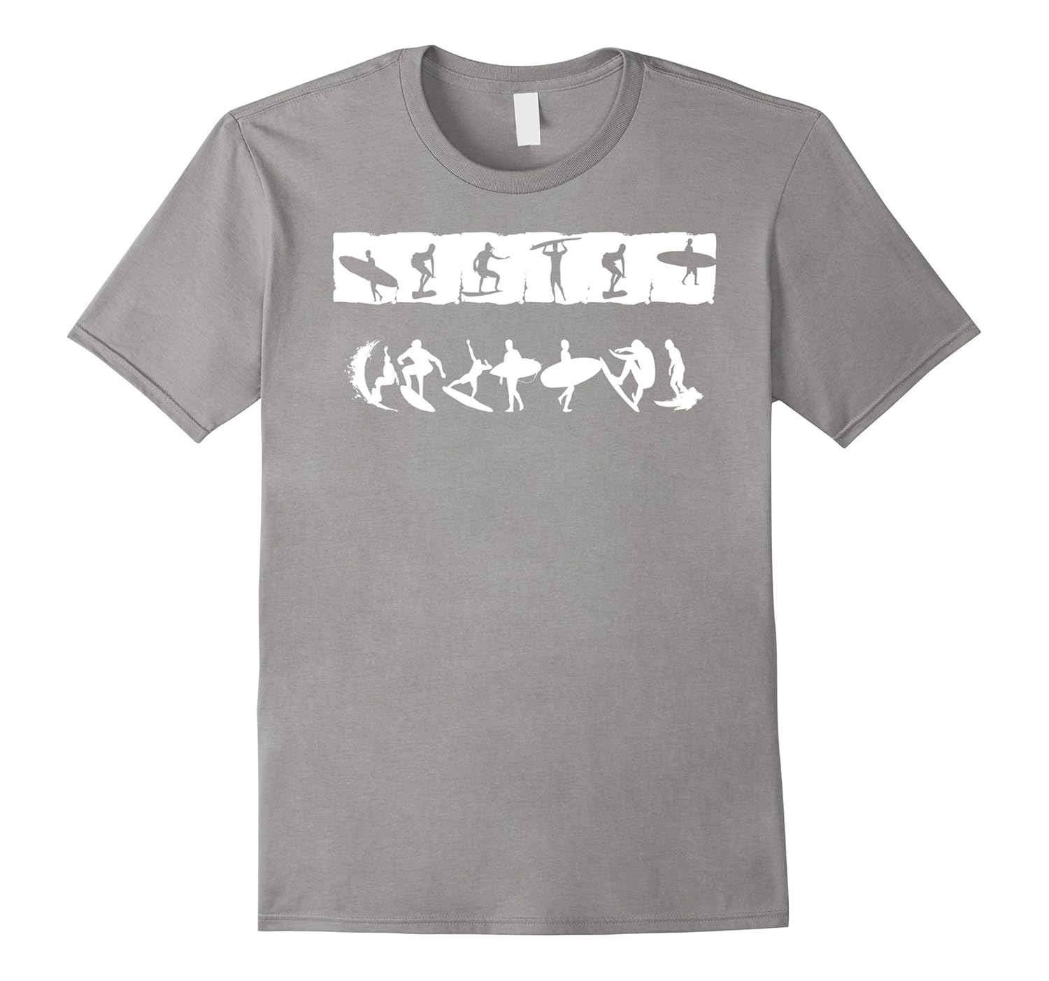 Solid colors: 100% Cotton; Heather Grey: 90% Cotton, 10% Polyester; All Other Heathers: 65% Cotton, 35% Polyester, Imported, Machine wash cold with like colors, dry low heat, Surf board icons tee shirt. Perfect tshirt for anyone who loves the beach, ocean, and especially the waves. Lightweight, Classic fit, Double-needle sleeve and bottom hem