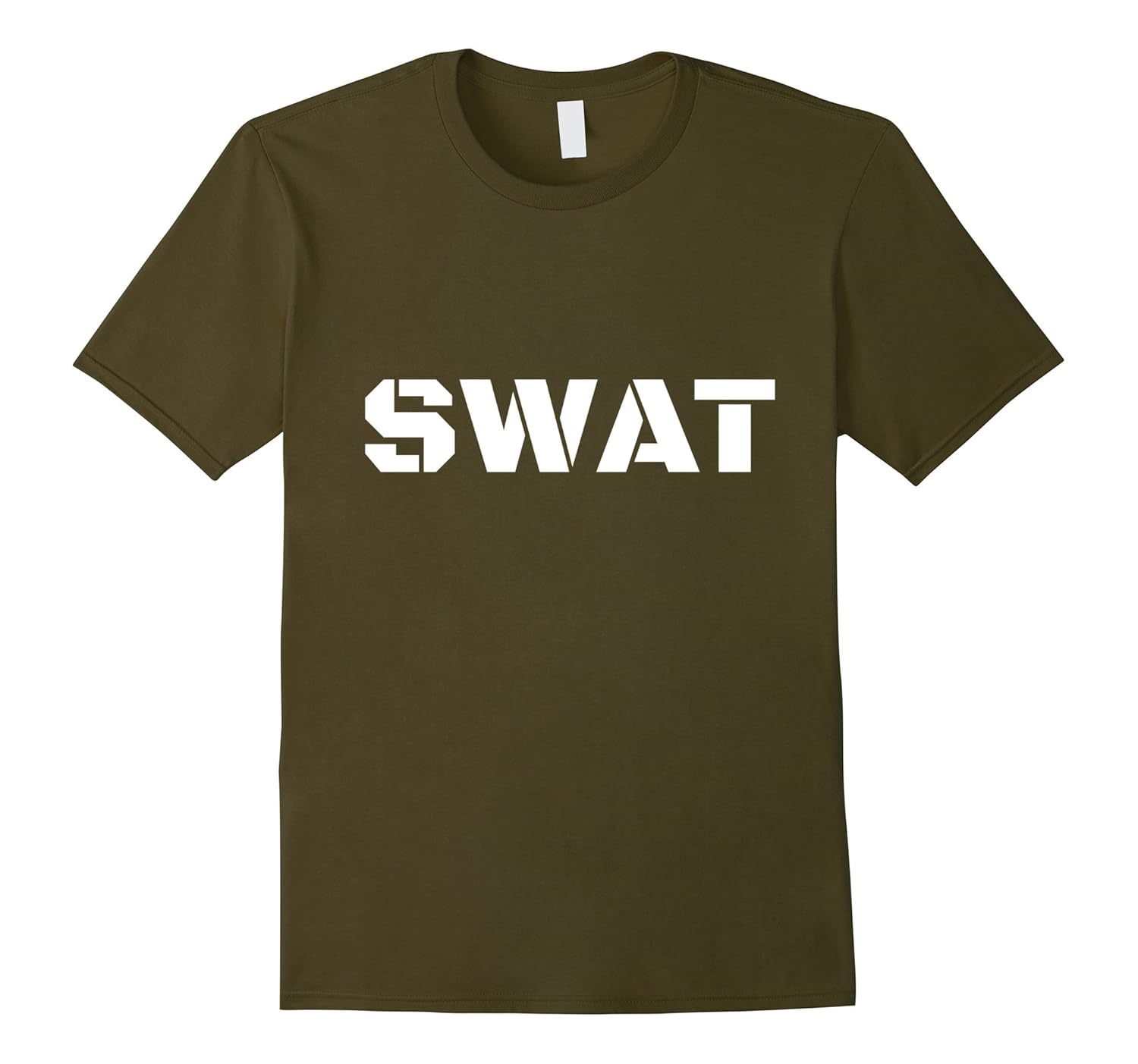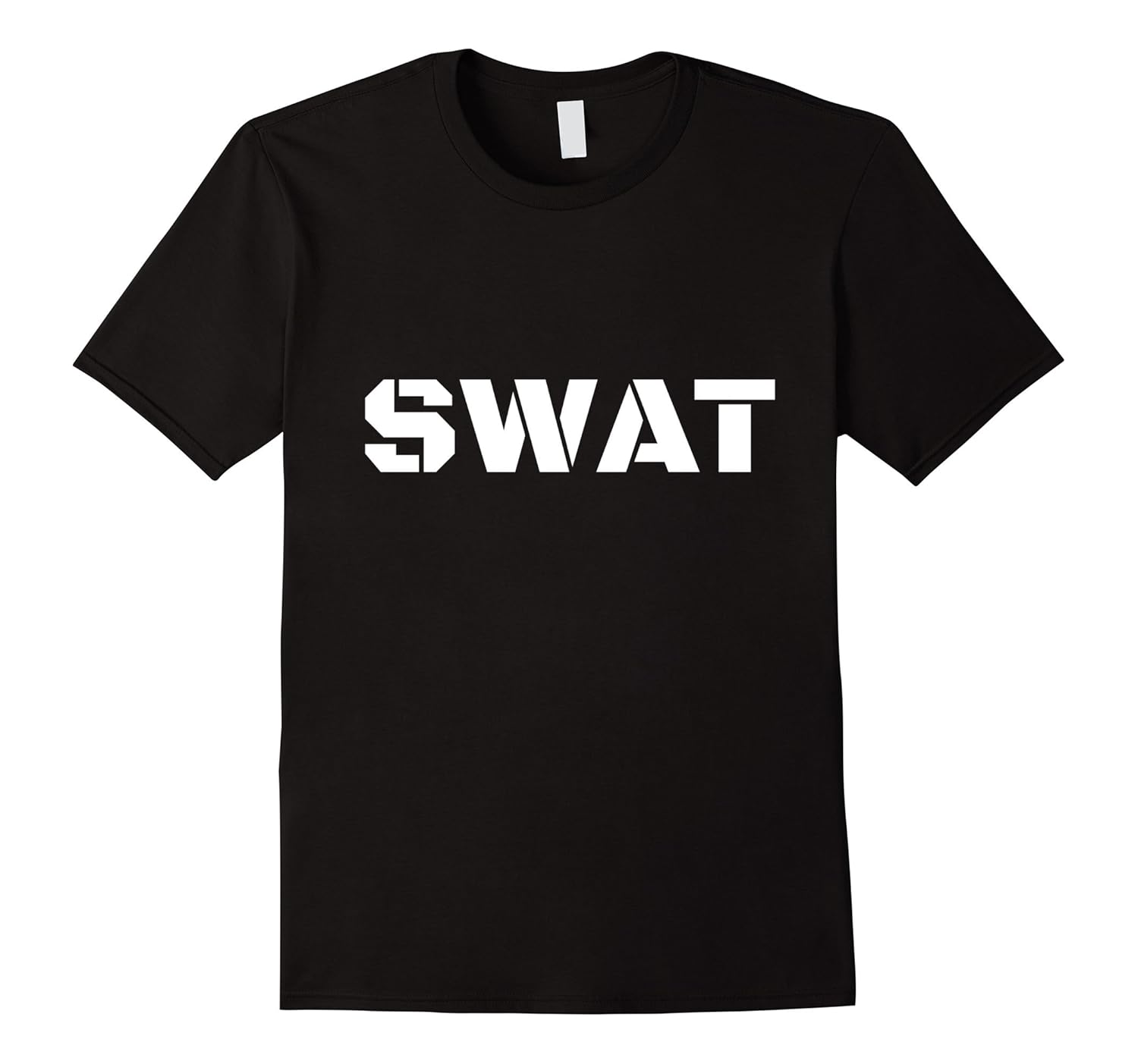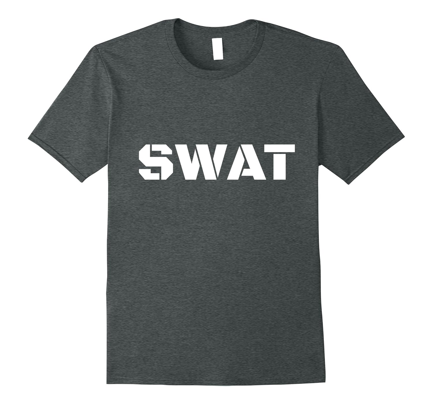 Solid colors: 100% Cotton; Heather Grey: 90% Cotton, 10% Polyester; All Other Heathers: 65% Cotton, 35% Polyester, Imported, Machine wash cold with like colors, dry low heat, SWAT Police T-Shirt Halloween Costume. Block letter SWAT police tee shirt ready for a simple halloween costume, No need to call 911 for a costume emergency! You can request a SWAT Team t shirt to celebrate all hallow”s eve as a fun and cute cop. This SWAT tshirt will give you the freedom to make a quick halloween costume, without all the cost of halloween stores. Lightweight, Classic fit, Double-needle sleeve and bottom hem