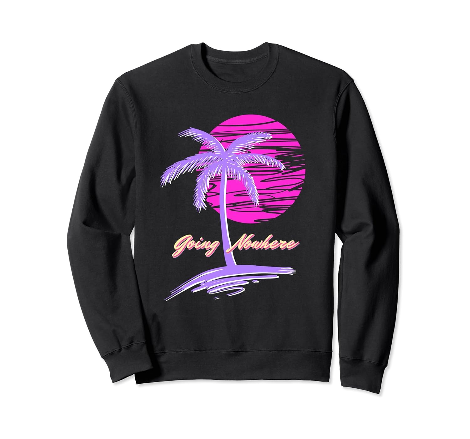 Solid colors: 80% Cotton, 20% Polyester; Heather Grey: 78% Cotton, 22% Poly; Dark Heather: 50% Cotton, 50% Polyester; Imported; Machine wash cold with like colors, dry low heat; Synthwave sweatshirt, funny retro 80s 90s neon pink purple beach palm trees Andamp; text GOING NOWHERE t-shirt. Pastel goth palette, soft grunge punk aesthetic, feelings, retro digital vaporwave.; Emo synthwave neon graphic sweatshirt, funny soft grunge synth shirt for anime nerd manga geek, vaporwave music Andamp; art fan, otaku, cosplay lover. For teens, men, women, kids, sad boys Andamp; girls; 8.5 oz, Classic fit, Twill-taped neck