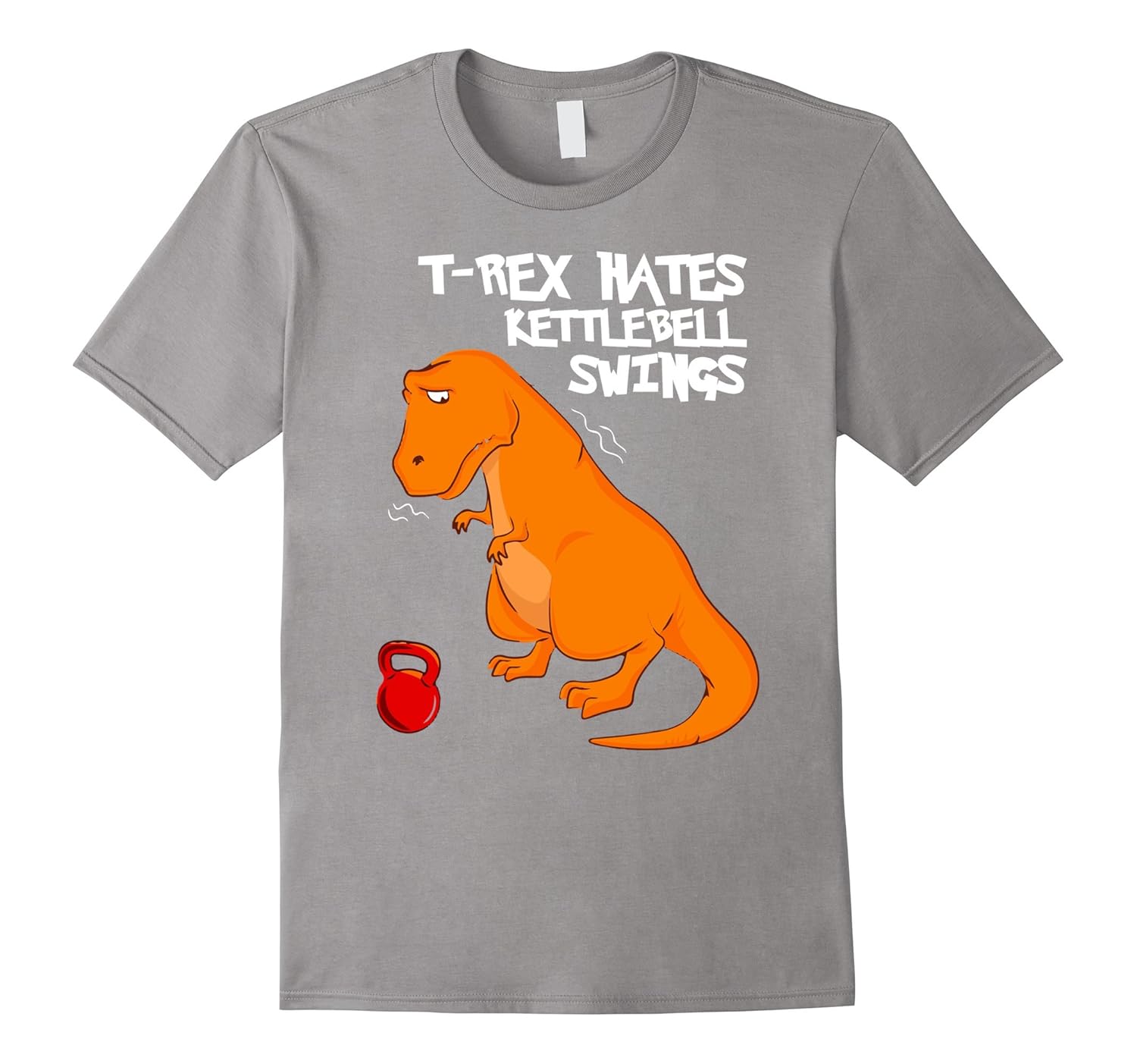 Solid colors: 100% Cotton; Heather Grey: 90% Cotton, 10% Polyester; All Other Heathers: 65% Cotton, 35% Polyester, Imported, Machine wash cold with like colors, dry low heat, T-Rex Hates Kettlebell Swings Gym, Lightweight, Classic fit, Double-needle sleeve and bottom hem