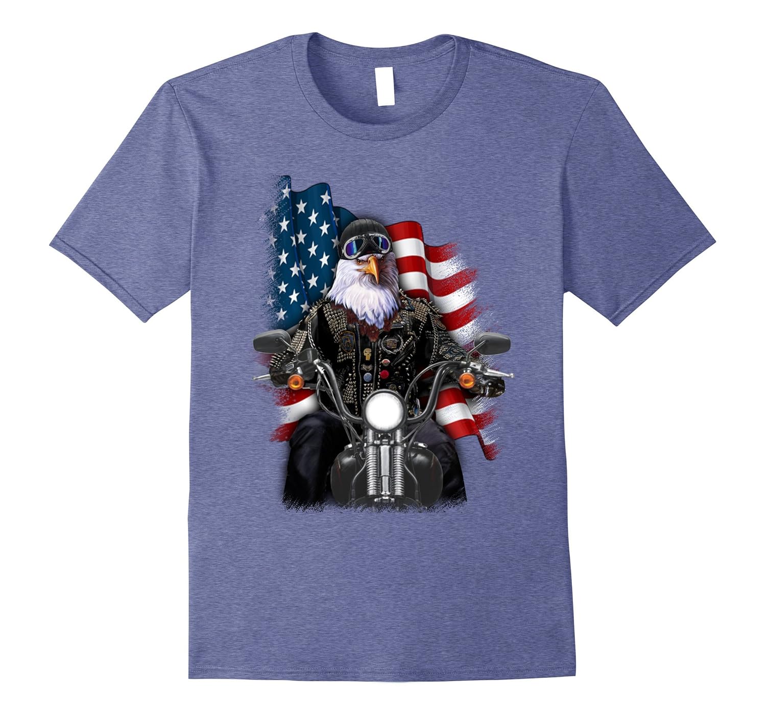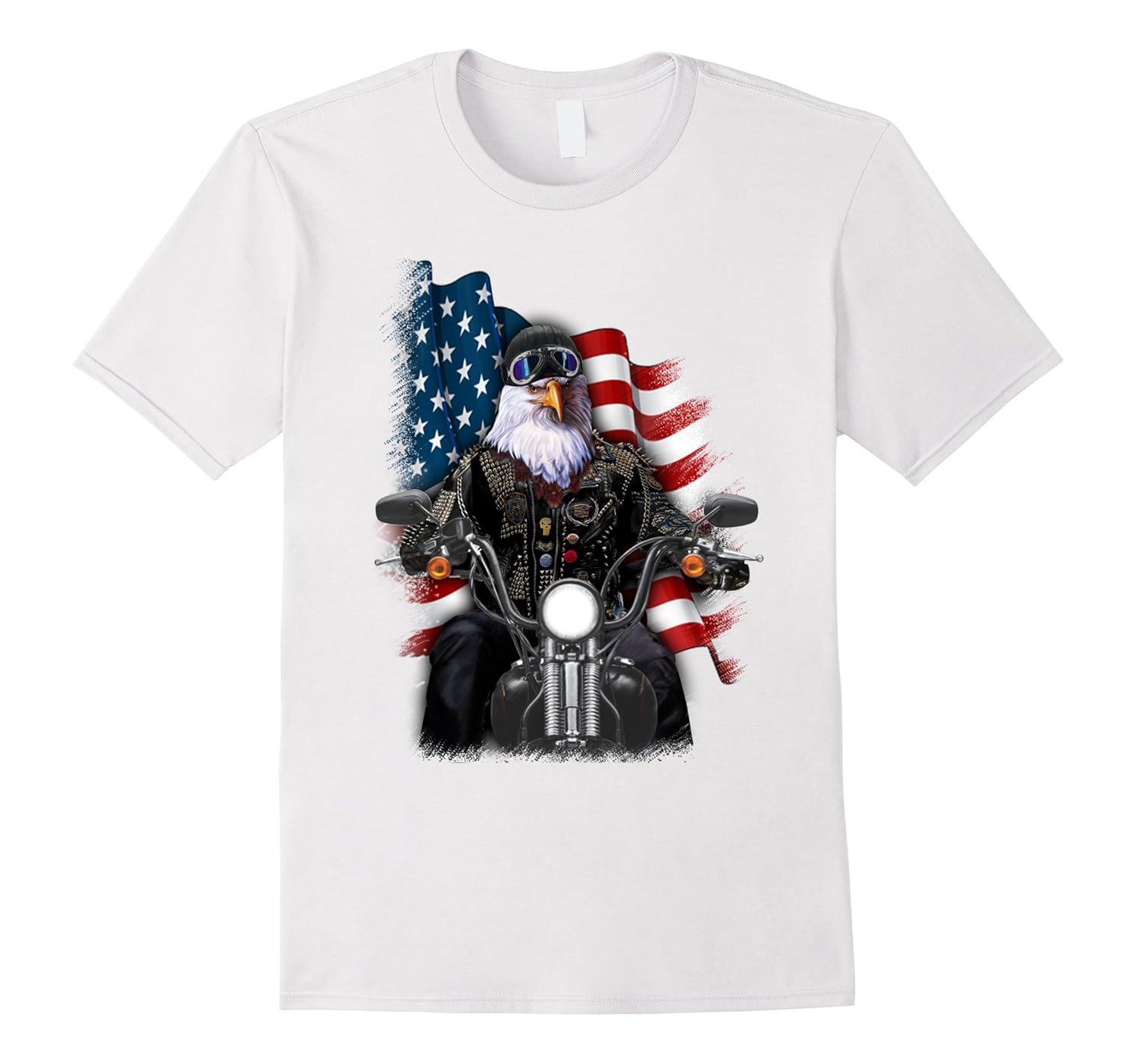 T-Shirt, America Bald Eagle as Biker Riding Motorcycle-ANZ