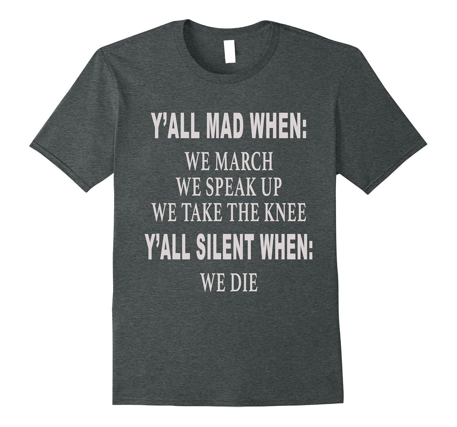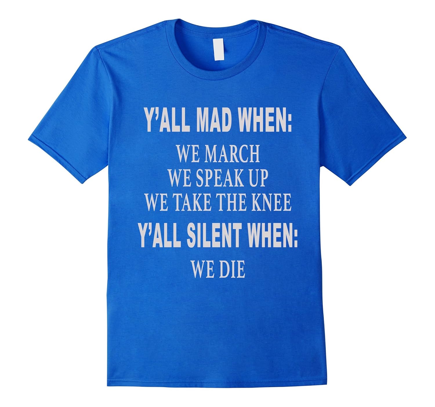 Solid colors: 100% Cotton; Heather Grey: 90% Cotton, 10% Polyester; All Other Heathers: 65% Cotton, 35% Polyester, Imported, Machine wash cold with like colors, dry low heat, Take The Knee t shirt. Black Lives Matter t shirt. BLM t shirt. Y”all Mad Y”all Silent clothing merchandise apparel clothes. Resistance t shirts. Equal rights t shirt. There is no other way: America must unite and everybody must have equal rights. This equality t shirt puts out a cool vibe. We”re on this planet together and we must demonstrate love trumps hate. A human is a human and we all matter and contrary to what some believe, including Trump, black lives matter too. Anti Trump t shirt. Resist. Lightweight, Classic fit, Double-needle sleeve and bottom hem