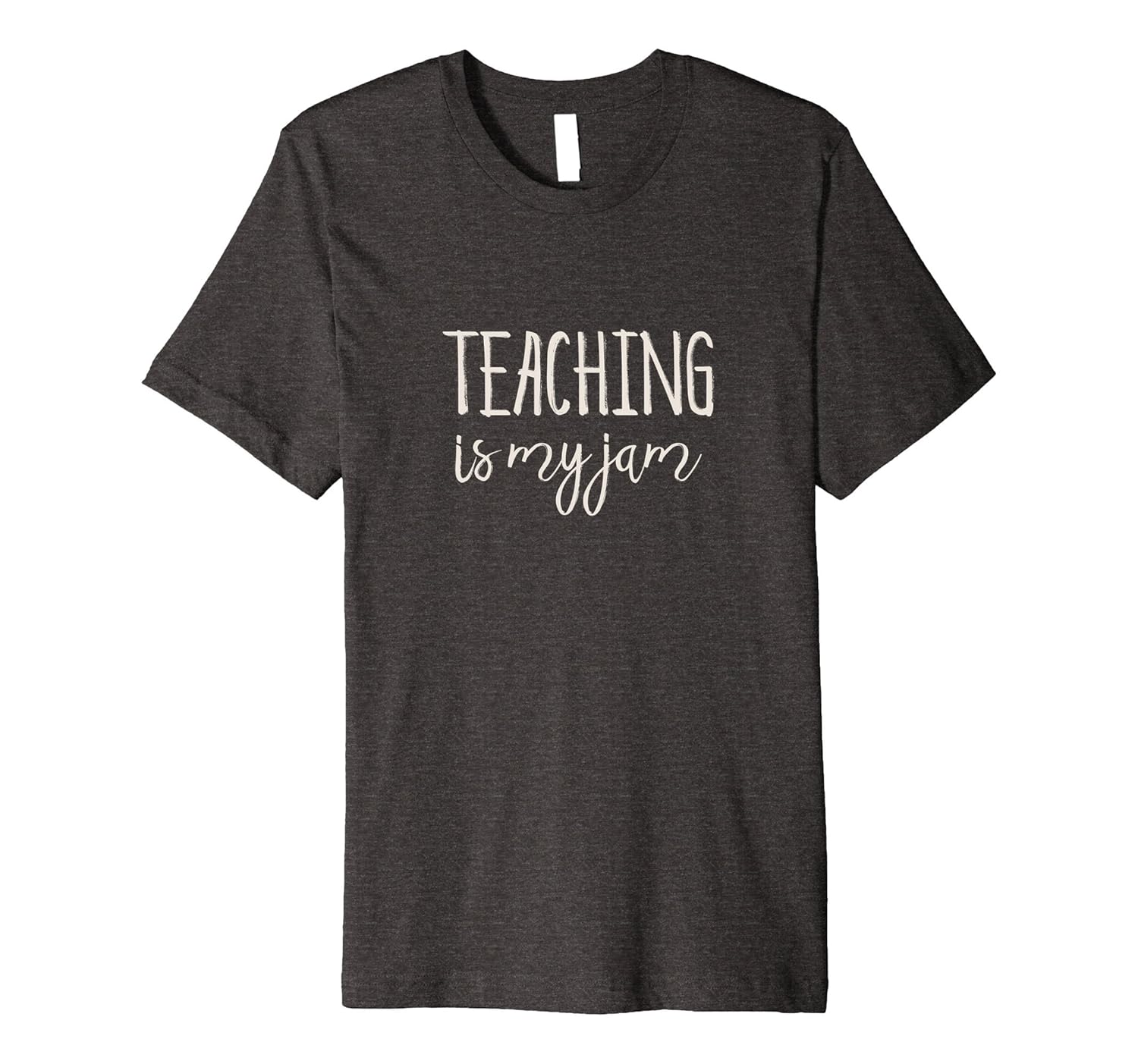 Solid colors: 100% Cotton; Heather Grey: 90% Cotton, 10% Polyester; All Other Heathers: 58% Cotton, 42% Polyester; Imported; Machine wash cold with like colors, dry low heat; This Teaching is my Jam tee shirt is the perfect t-shirt for any teacher who loves teaching; Fit: Slim (consider ordering a larger size for a looser fit); Makes a great back to school tee shirt or teacher appreciation gift; This premium t-shirt is made of lightweight fine jersey fabric