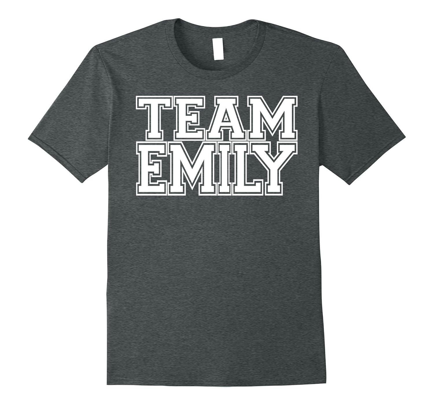 Solid colors: 100% Cotton; Heather Grey: 90% Cotton, 10% Polyester; All Other Heathers: 65% Cotton, 35% Polyester, Imported, Machine wash cold with like colors, dry low heat, Weddings, soccer, sporting events, for the groom or bride during the bachelor or bachelorette party, bridal shower, birthdays, Christmas, anniversaries, gift ideas for Emilys!, Order a size up if you prefer a looser fit. Lightweight, Classic fit, Double-needle sleeve and bottom hem