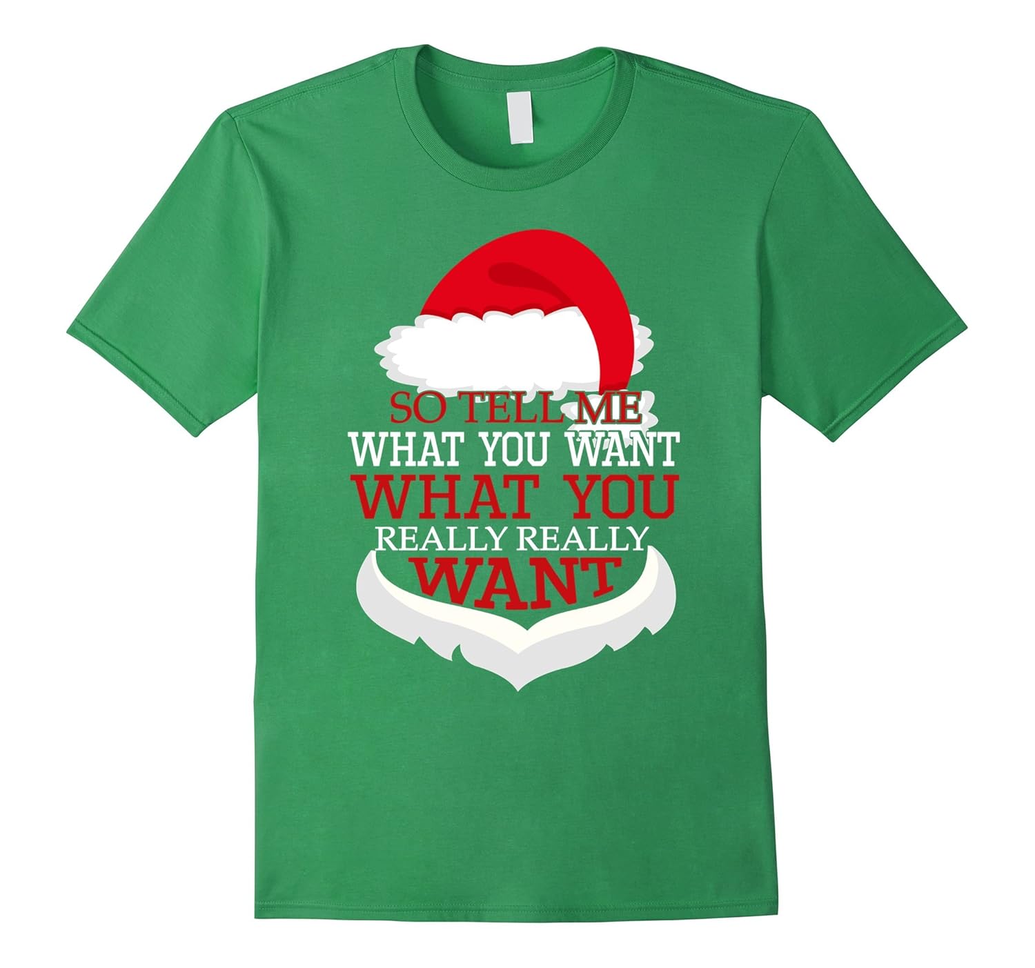 Solid colors: 100% Cotton; Heather Grey: 90% Cotton, 10% Polyester; All Other Heathers: 65% Cotton, 35% Polyester, Imported, Machine wash cold with like colors, dry low heat, So tell me what you want what you really really want t-shirt. Are you a christmas celebrating, gift wrapping, santa claus believing, xmas person. Then this funny christmas shirt is just for you. Great gift for Birthday, Valentine”s Day, Mother”s Day, Anniversary, Christmas. Funny christmas gift shirt. Lightweight, Classic fit, Double-needle sleeve and bottom hem