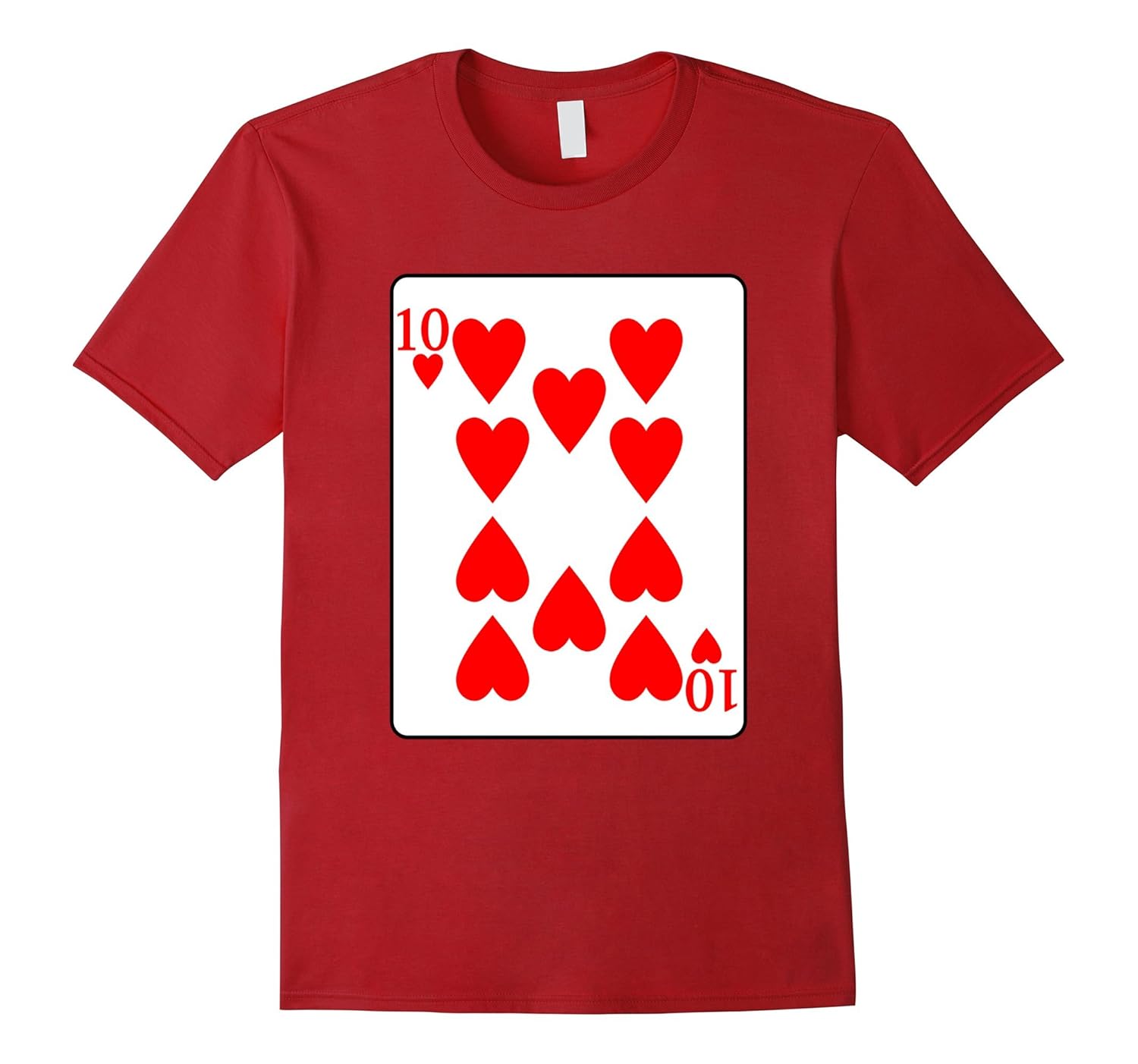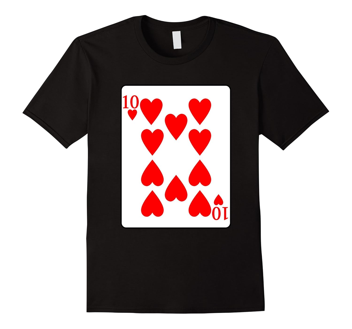 Solid colors: 100% Cotton; Heather Grey: 90% Cotton, 10% Polyester; All Other Heathers: 65% Cotton, 35% Polyester, Imported, Machine wash cold with like colors, dry low heat, Ten of Hearts playing card t-shirt for halloween costume, poker player, dress up like deck of cards tee. Make a royal flush poker hand with friends, roommates, siblings. Funny group halloween costume, trick or treat shirt. Lightweight, Classic fit, Double-needle sleeve and bottom hem