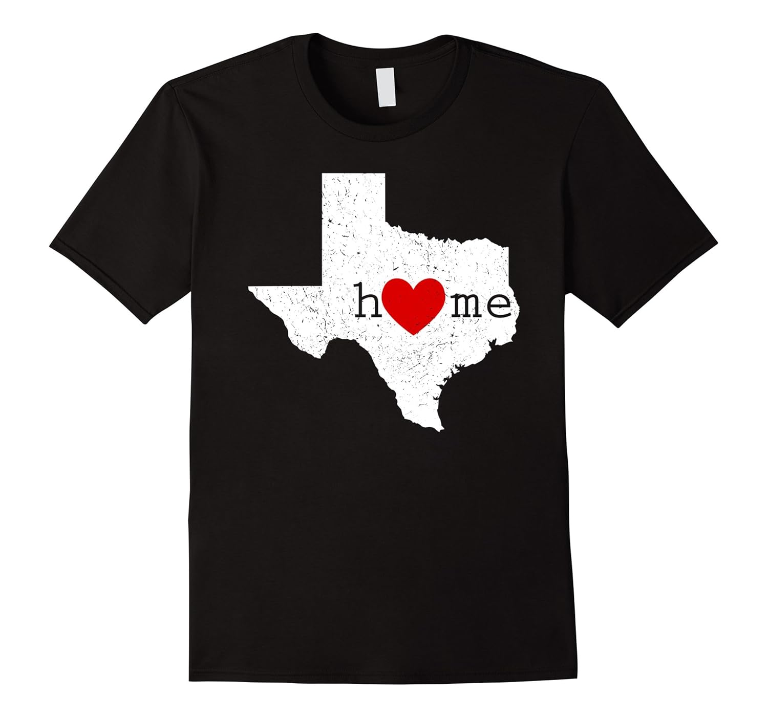 Texas Home T Shirt Distressed TX Map with Red Love Heart-ANZ