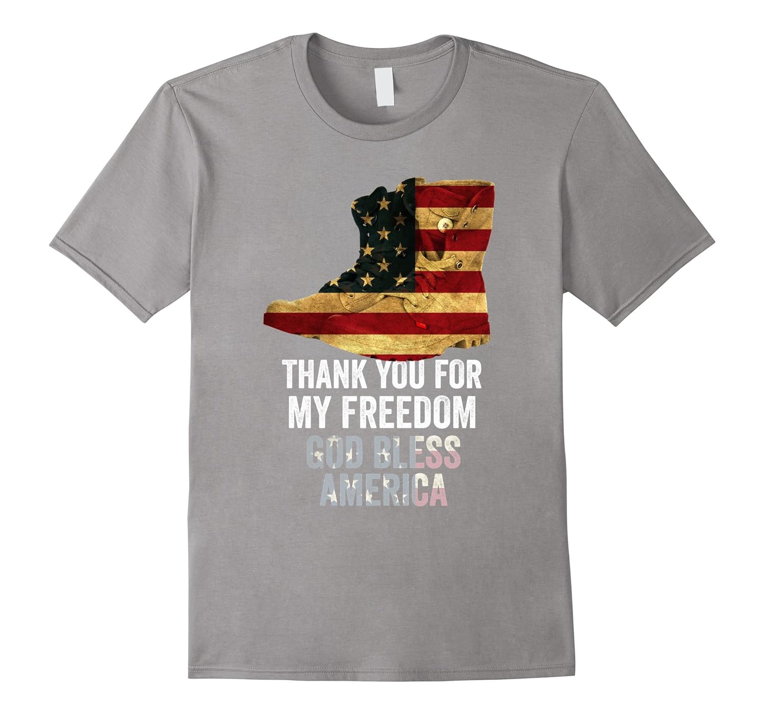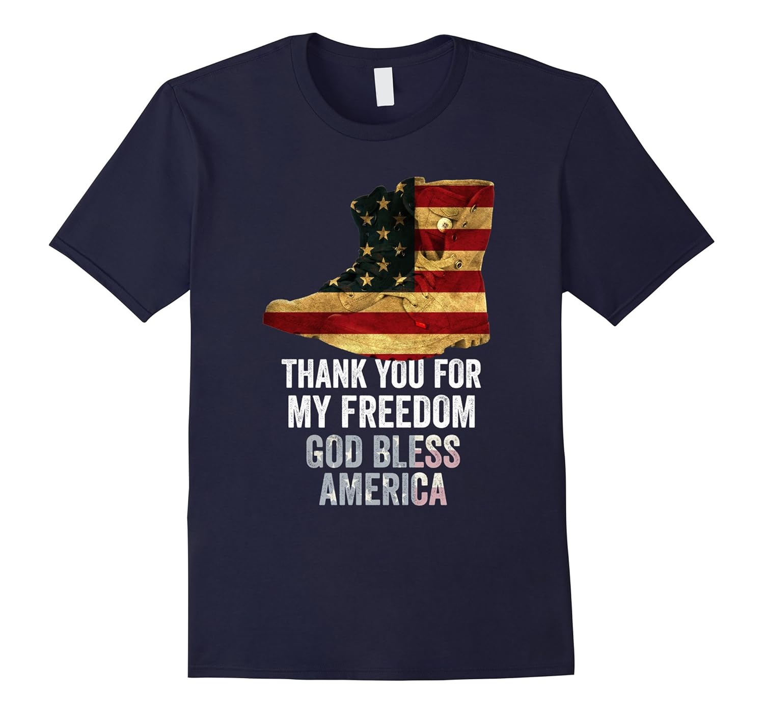 Solid colors: 100% Cotton; Heather Grey: 90% Cotton, 10% Polyester; All Other Heathers: 50% Cotton, 50% Polyester; Imported; Machine wash cold with like colors, dry low heat; Thank You For My Freedom – God Bless America Cool T-Shirt – Gift Shirt For Memorial Day, July 4th and Veterans Day; Patriotic tee for fans of the United States Of America. This tee is available in mens, womens, and youth sizes for your choice and comfort. Great gift tshirt for a birthday, Christmas and any other gift giving occasion.; Lightweight, Classic fit, Double-needle sleeve and bottom hem