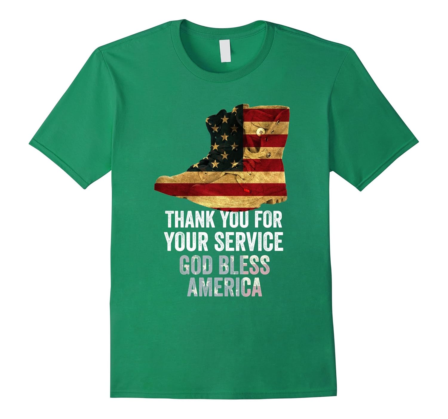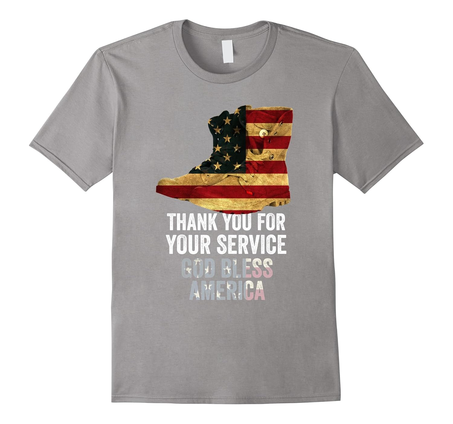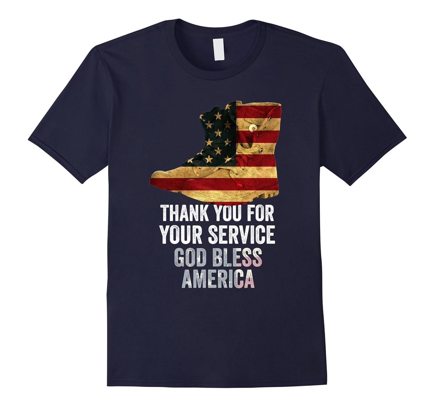 Solid colors: 100% Cotton; Heather Grey: 90% Cotton, 10% Polyester; All Other Heathers: 50% Cotton, 50% Polyester; Imported; Machine wash cold with like colors, dry low heat; Thank You For Your Service – God Bless America Cool T-Shirt – Gift Shirt For Memorial Day, July 4th and Veterans Day; Patriotic tee for fans of the United States Of America. This tee is available in mens, womens, and youth sizes for your choice and comfort. Great gift tshirt for a birthday, Christmas and any other gift giving occasion.; Lightweight, Classic fit, Double-needle sleeve and bottom hem