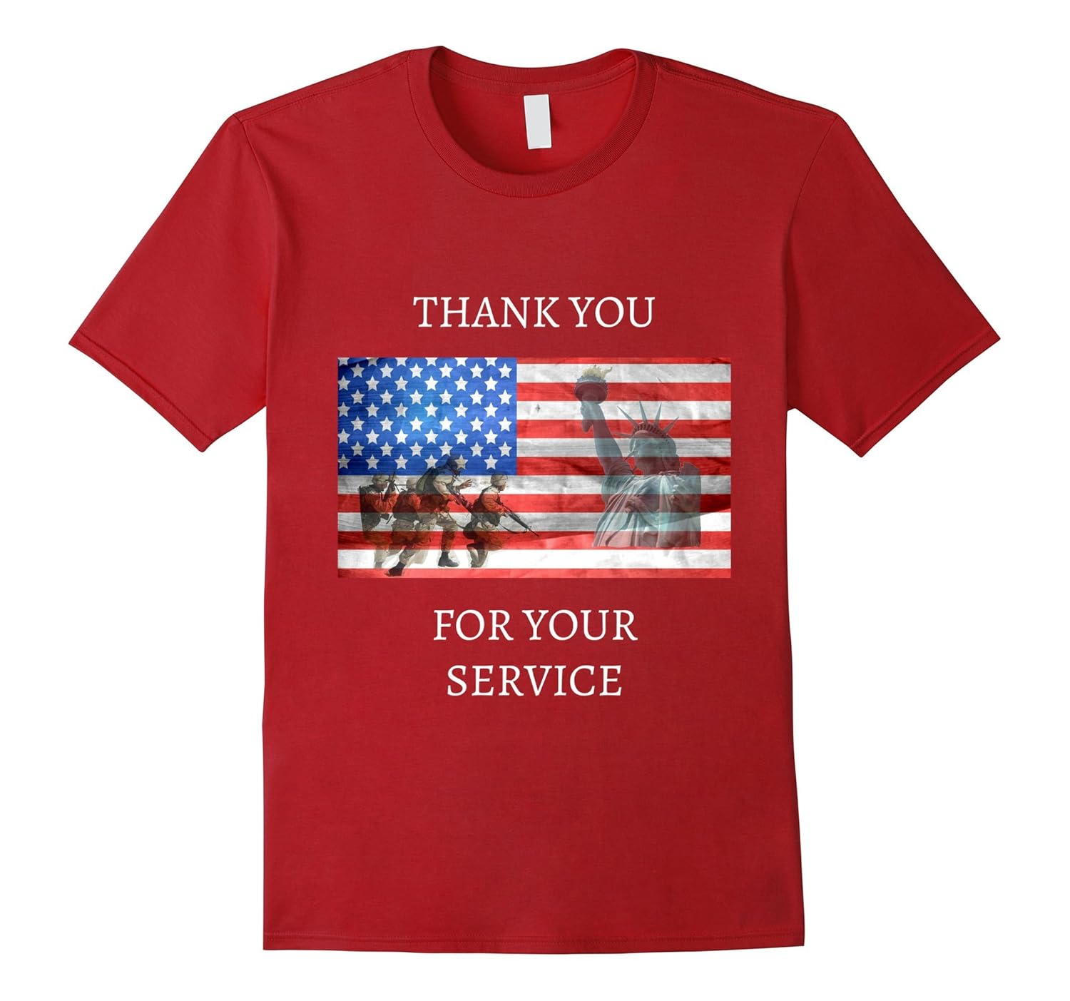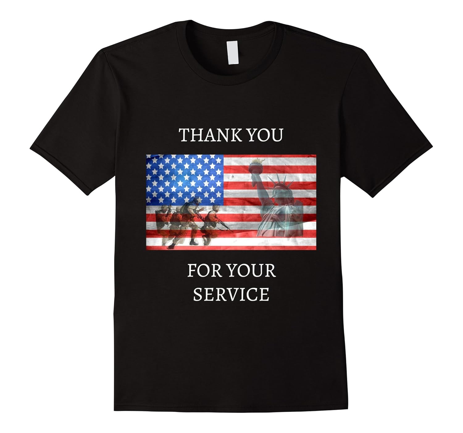 Solid colors: 100% Cotton; Heather Grey: 90% Cotton, 10% Polyester; All Other Heathers: 65% Cotton, 35% Polyester, Imported, Machine wash cold with like colors, dry low heat, Honour soldiers this Veterans Day with this patriotic Thank You For Your Service t shirt. The shirt features skilled soldiers, a American Flag with the Statue of Liberty. Perfect gift for the whole family and; friends to wear with pride. Show your patriotism year round and on Memorial and; Armed Forces Day. This is a great gift for active and retired military. This item is fitted if you want a more relaxed fit please order a size up. Lightweight, Classic fit, Double-needle sleeve and bottom hem