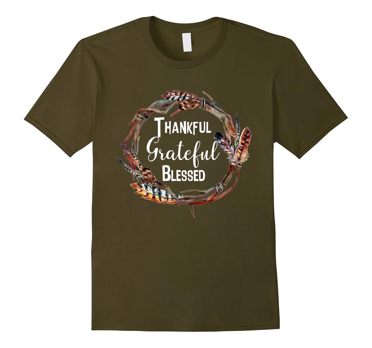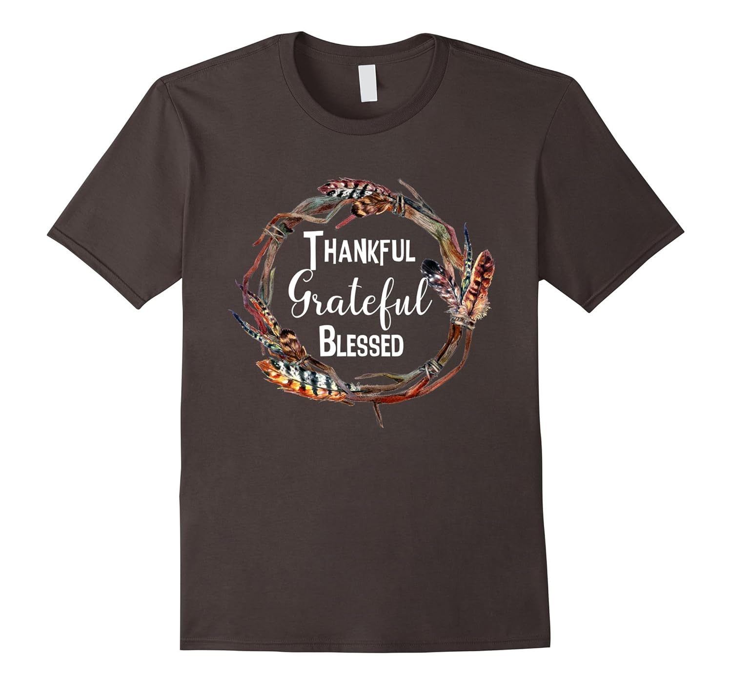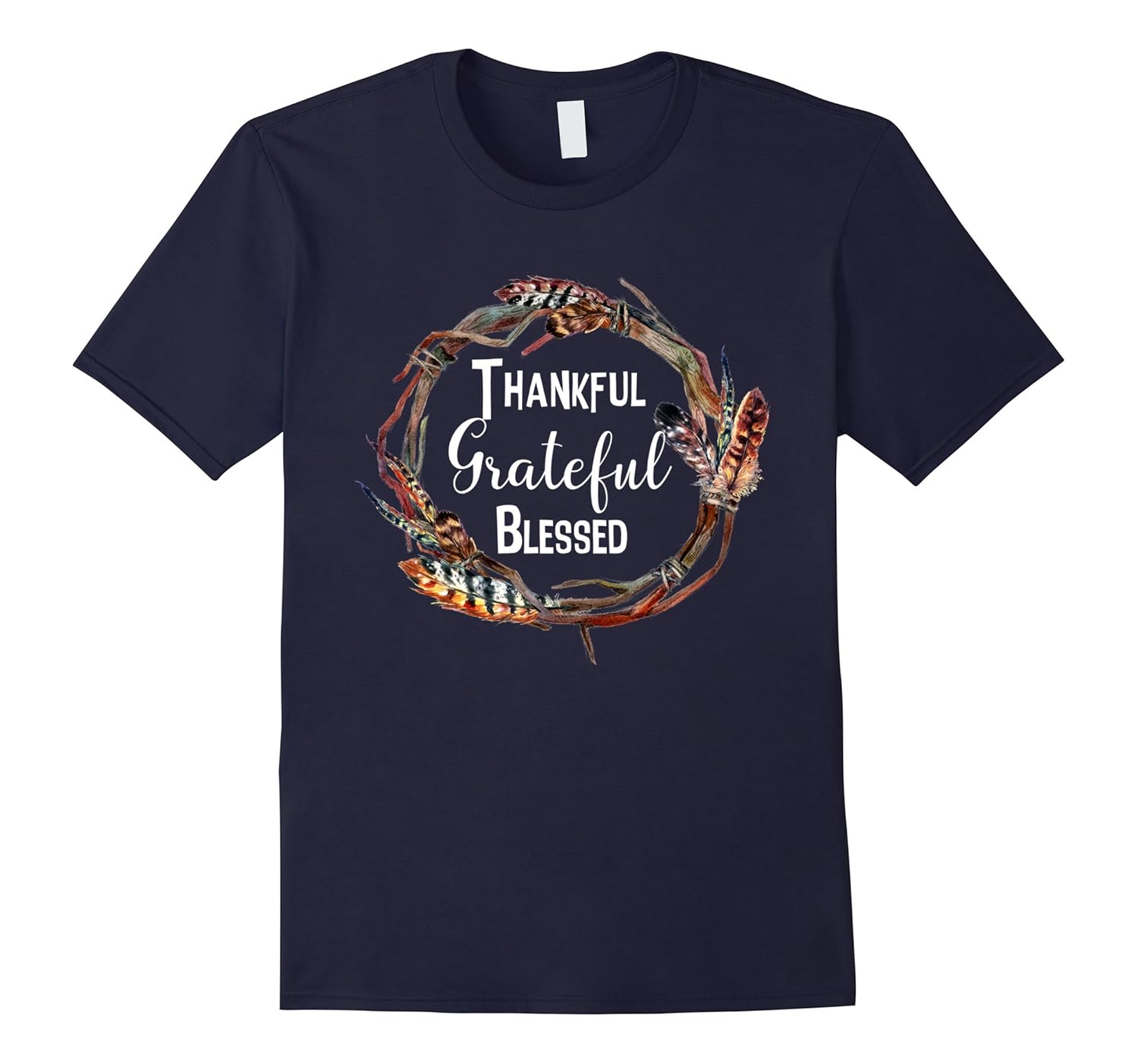 Solid colors: 100% Cotton; Heather Grey: 90% Cotton, 10% Polyester; All Other Heathers: 65% Cotton, 35% Polyester, Imported, Machine wash cold with like colors, dry low heat, Thankful Grateful Blessed With wonderful Feathers Thanksgiving graphic design Shirt is perfect gift idea for Thanksgiving, Christmas, New Year or any occasion. This Thankful Grateful Blessed With wonderful Feathers Thanksgiving graphic design Shirt is designed for a snug fit. If you like a baggier feel, order a size up. Lightweight, Classic fit, Double-needle sleeve and bottom hem