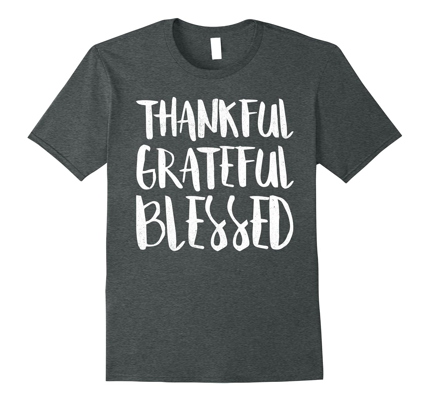 Solid colors: 100% Cotton; Heather Grey: 90% Cotton, 10% Polyester; All Other Heathers: 65% Cotton, 35% Polyester; Imported; Machine wash cold with like colors, dry low heat; Perfect Gift Idea for Men / Women / Kids – Thankful Grateful Blessed Shirt. Cool present for dad, father, mom, mother, son, youth, adult, toddler, baby, child, girl, boy, friends, family. Give thanks, eat turkey Andamp; Celebrate Thanksgiving Day in 2017!; Funny Thankful Greatful Blessed Couples Matching Tee. Complete your collection of harvest party accessories for him her (decorations, gobble tank top, coffee mug, long sleeve, hoodie, sweatshirt, sweater, onesie, hat, charm, pin, socks) with this TShirt; Lightweight, Classic fit, Double-needle sleeve and bottom hem