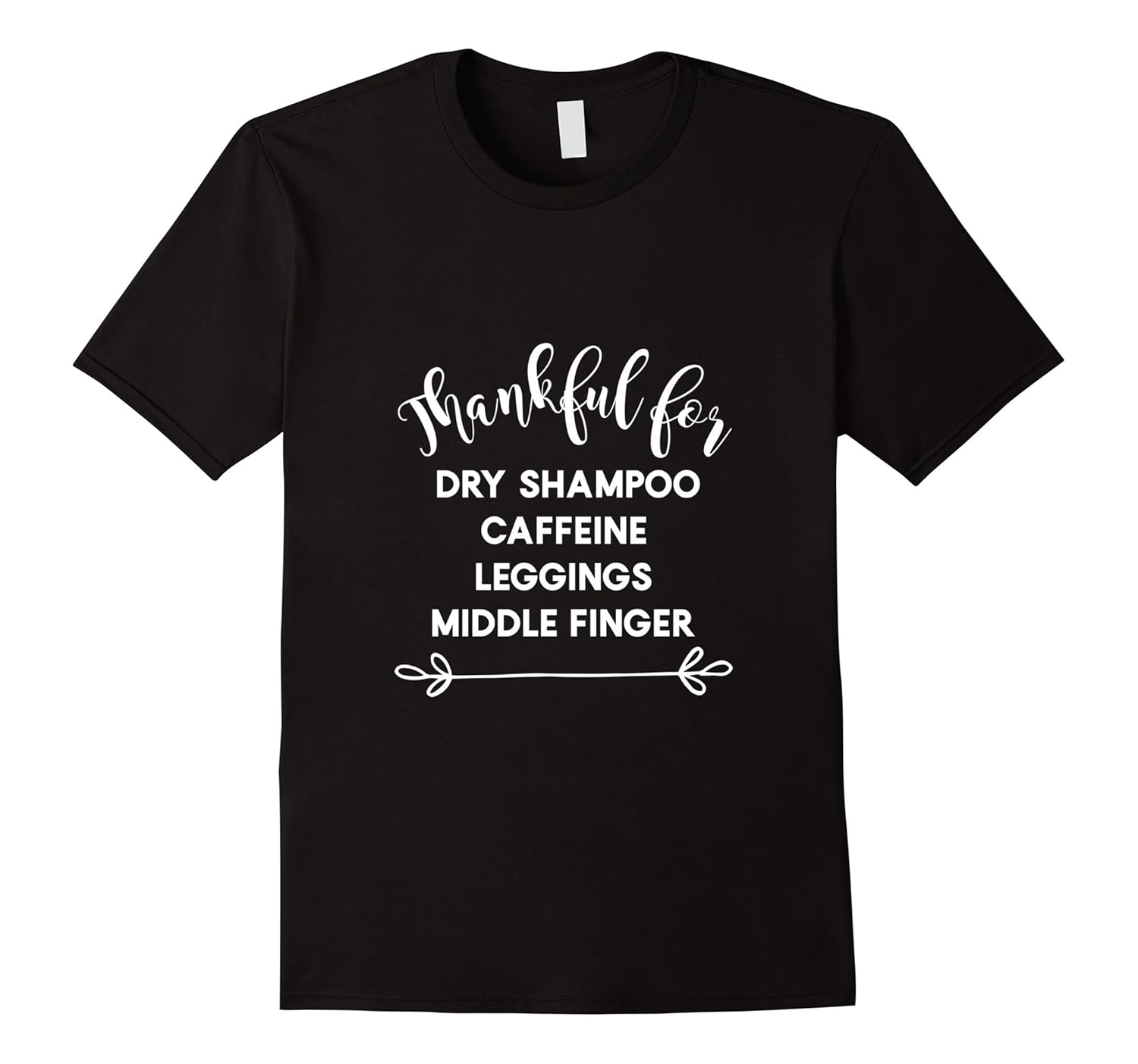 Solid colors: 100% Cotton; Heather Grey: 90% Cotton, 10% Polyester; All Other Heathers: 65% Cotton, 35% Polyester, Imported, Machine wash cold with like colors, dry low heat, Thankful Tees for Women Funny Thankful Thanksgiving Shirt. Shirt Reads Thankful For Dry Shampoo Caffeine Leggings and Middle Finger. This thankful tshirt for women makes a great gift!, Makes the perfect shirt to wear on Thanksgiving to show you”re thankful! Get a laugh from friends and family! This thankful shirt for women is perfect to wear when you”re feeling gratitude for all the great things in your life!, Lightweight, Classic fit, Double-needle sleeve and bottom hem