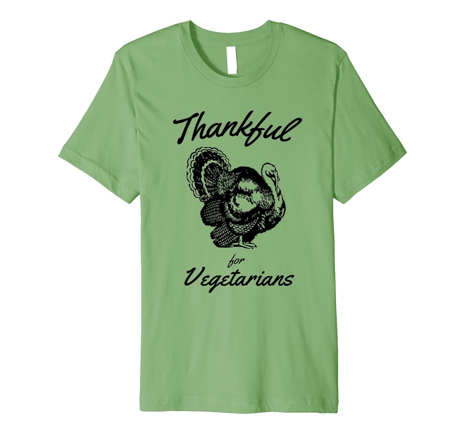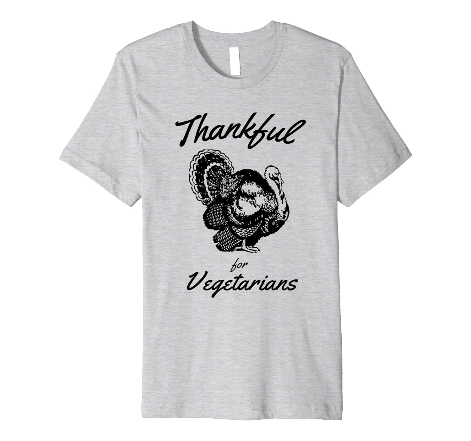 Solid colors: 100% Cotton; Heather Grey: 90% Cotton, 10% Polyester; All Other Heathers: 58% Cotton, 42% Polyester; Imported; Machine wash cold with like colors, dry low heat; Cruelty free vegetarian thanksgiving t-shirt for the plant based person in your life.; Fit: Slim (consider ordering a larger size for a looser fit); Show everyone that you dont kill turkeys for thanksgiving.; This premium t-shirt is made of lightweight fine jersey fabric