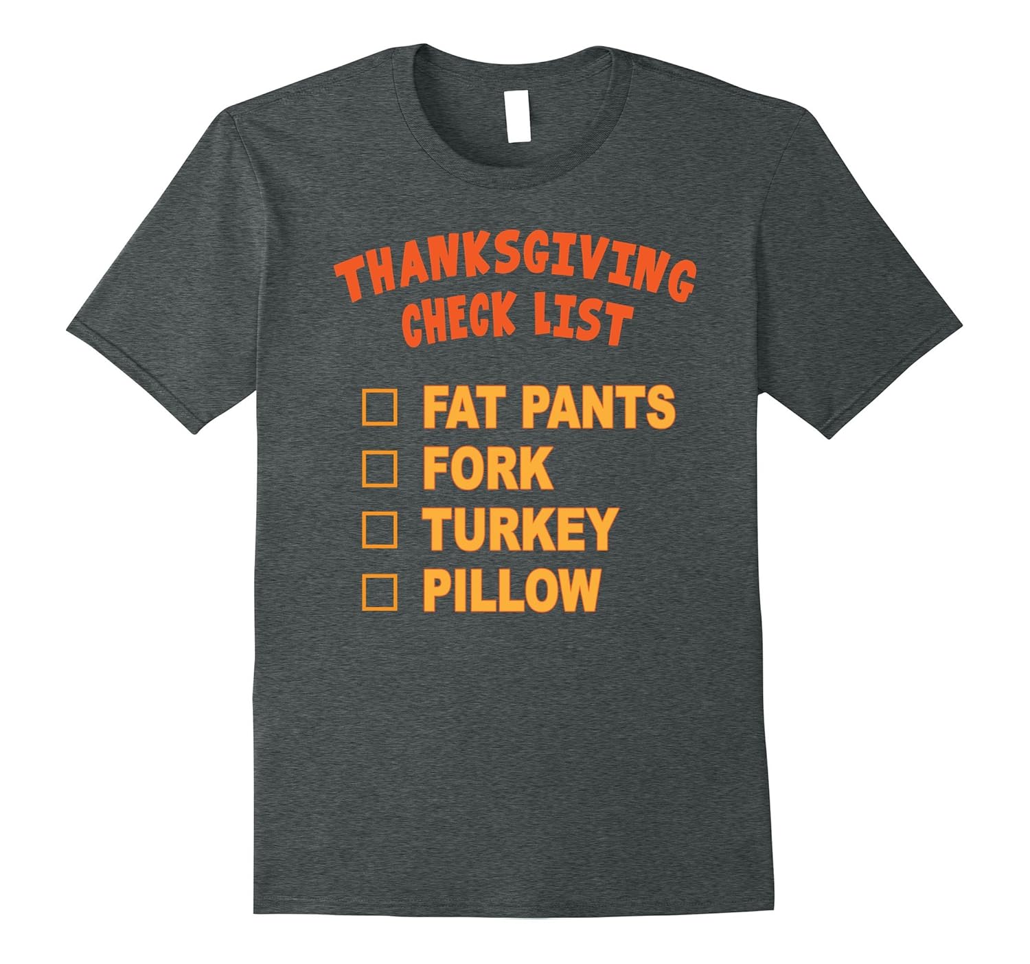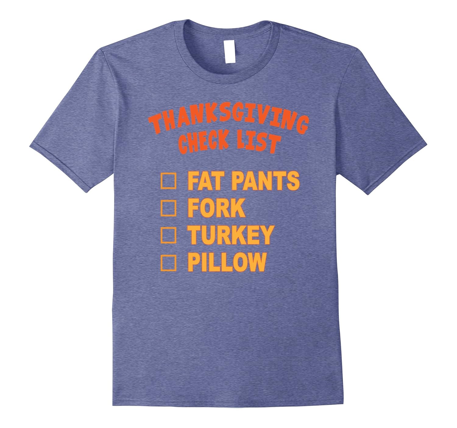 Solid colors: 100% Cotton; Heather Grey: 90% Cotton, 10% Polyester; All Other Heathers: 65% Cotton, 35% Polyester, Imported, Machine wash cold with like colors, dry low heat, Funny Thanksgiving T Shirt, Check the list of funny Thanksgiving things to check off, Lightweight, Classic fit, Double-needle sleeve and bottom hem