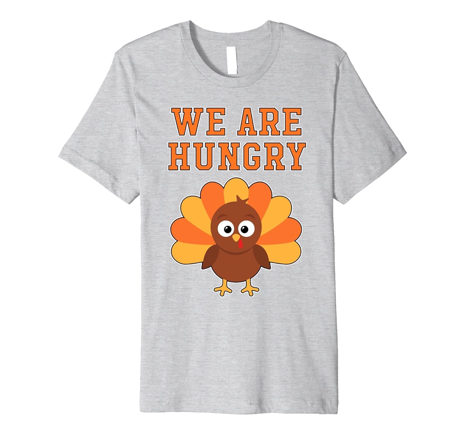 Solid colors: 100% Cotton; Heather Grey: 90% Cotton, 10% Polyester; All Other Heathers: 58% Cotton, 42% Polyester; Imported; Machine wash cold with like colors, dry low heat; Wear this Thanksgiving Pregnancy Mom – We Are Hungry T-Shirt to introduce your bundle of joy to your family. Show that you have a surprise planned for Thanksgiving Day with this shirt.; Fit: Slim (consider ordering a larger size for a looser fit); Celebrate your new baby with this tshirt while at the Thanksgiving dinner table. Have fun wearing this novelty mother tee during the holiday.; This premium t-shirt is made of lightweight fine jersey fabric