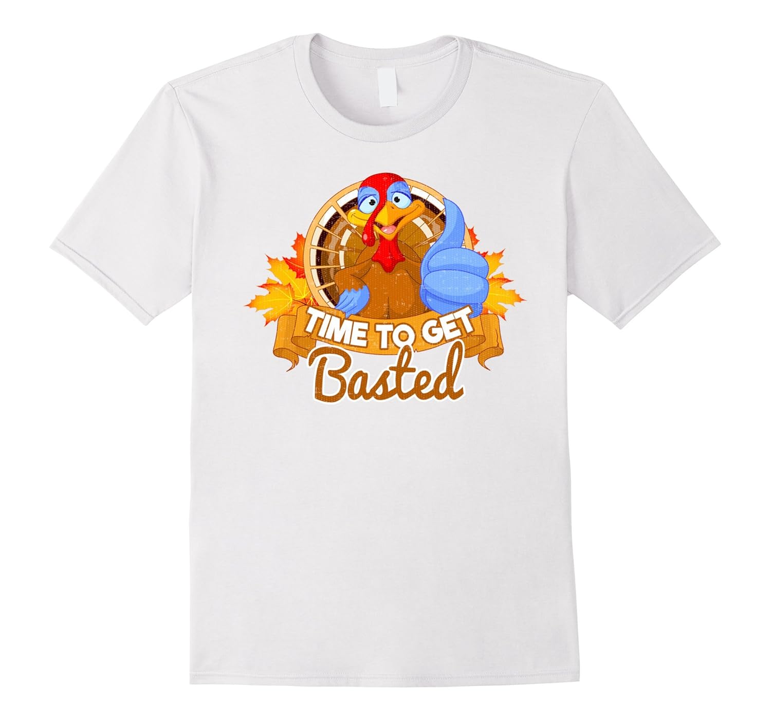 Solid colors: 100% Cotton; Heather Grey: 90% Cotton, 10% Polyester; All Other Heathers: 65% Cotton, 35% Polyester, Imported, Machine wash cold with like colors, dry low heat, Funny Thanksgiving Turkey thumbs up picture, Time to Get Basted text, Lightweight, Classic fit, Double-needle sleeve and bottom hem