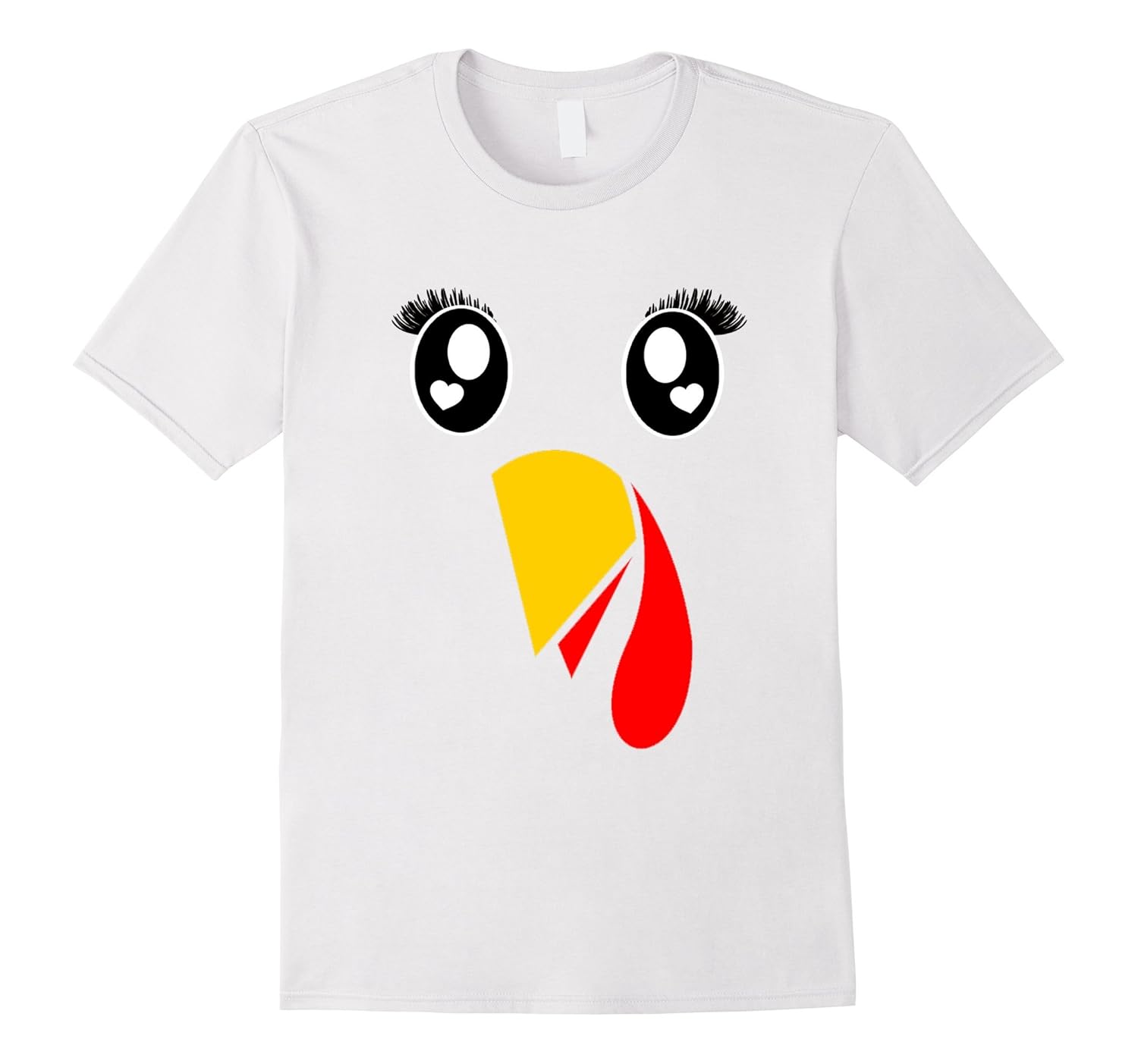 Solid colors: 100% Cotton; Heather Grey: 90% Cotton, 10% Polyester; All Other Heathers: 65% Cotton, 35% Polyester; Imported; Machine wash cold with like colors, dry low heat; Cute and funny turkey face emoji happy halloween shirt with long makeup eye lash is a gift for toddler, tween, little girls, teenage girls, mom, aunt, preschool or kindergarten teacher, vet, zoo keeper, principal, staff, TA, family team, camp counselor.; Cool stocking stuffer for Christmas holiday season, school Halloween costume party, birthday, Thanksgiving, New Years day, graduation, play or performance, animal theme party like chicken, rooster, or hen.; Lightweight, Classic fit, Double-needle sleeve and bottom hem