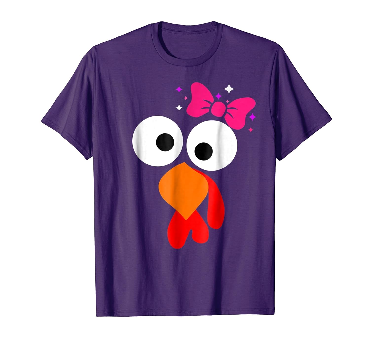 Thanksgiving TURKEY FACE pink bow tshirt for girls Halloween-ANZ