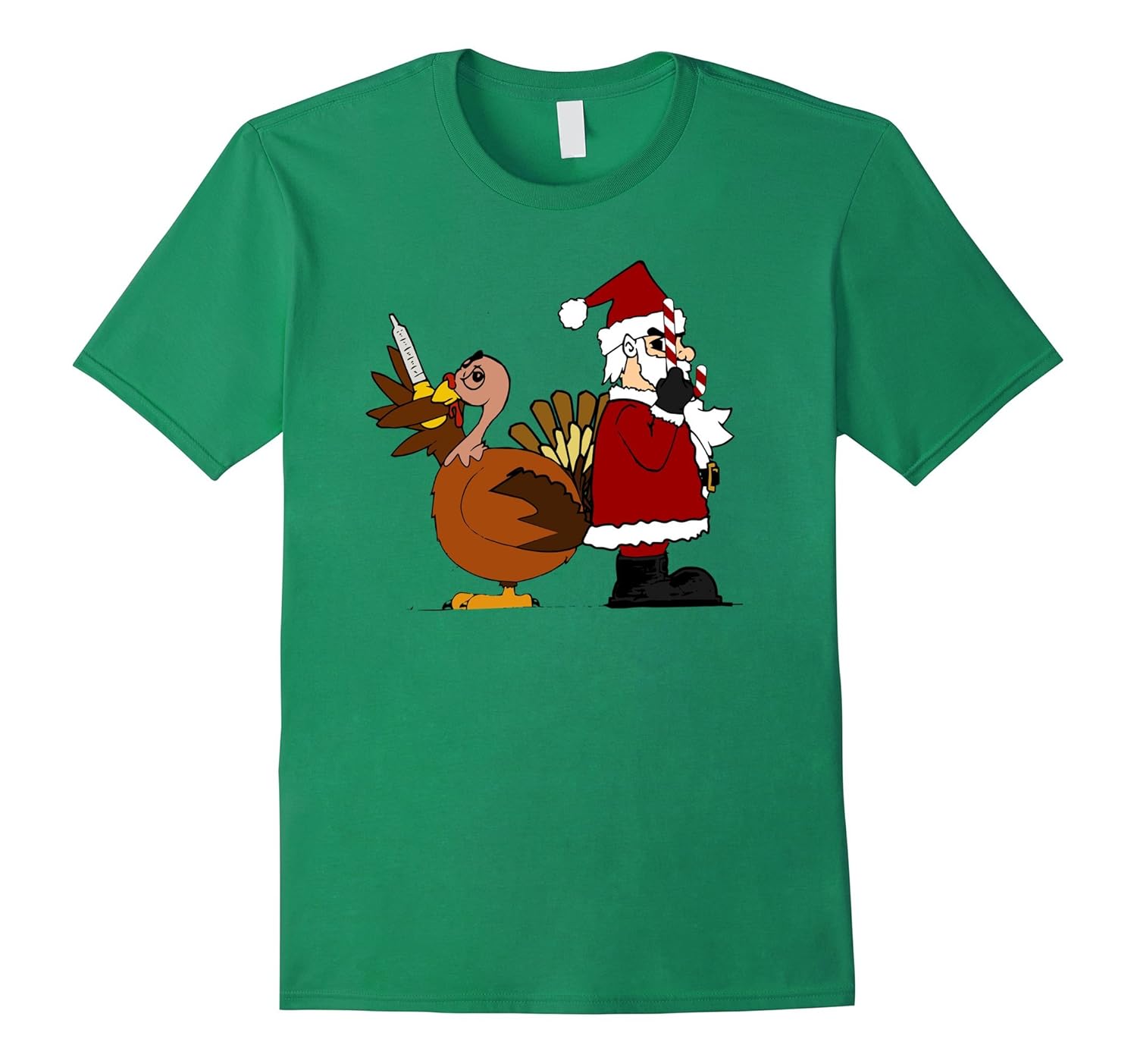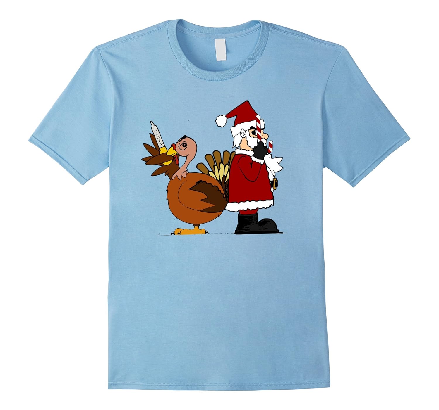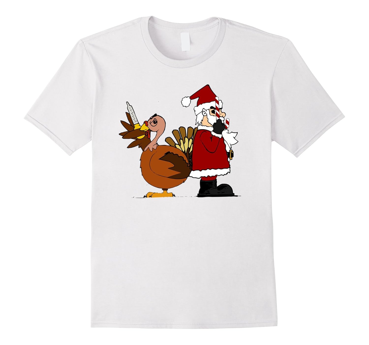 Thanksgiving Turkey vs Santa Claus Duel Funny Holiday TShirt-ANZ