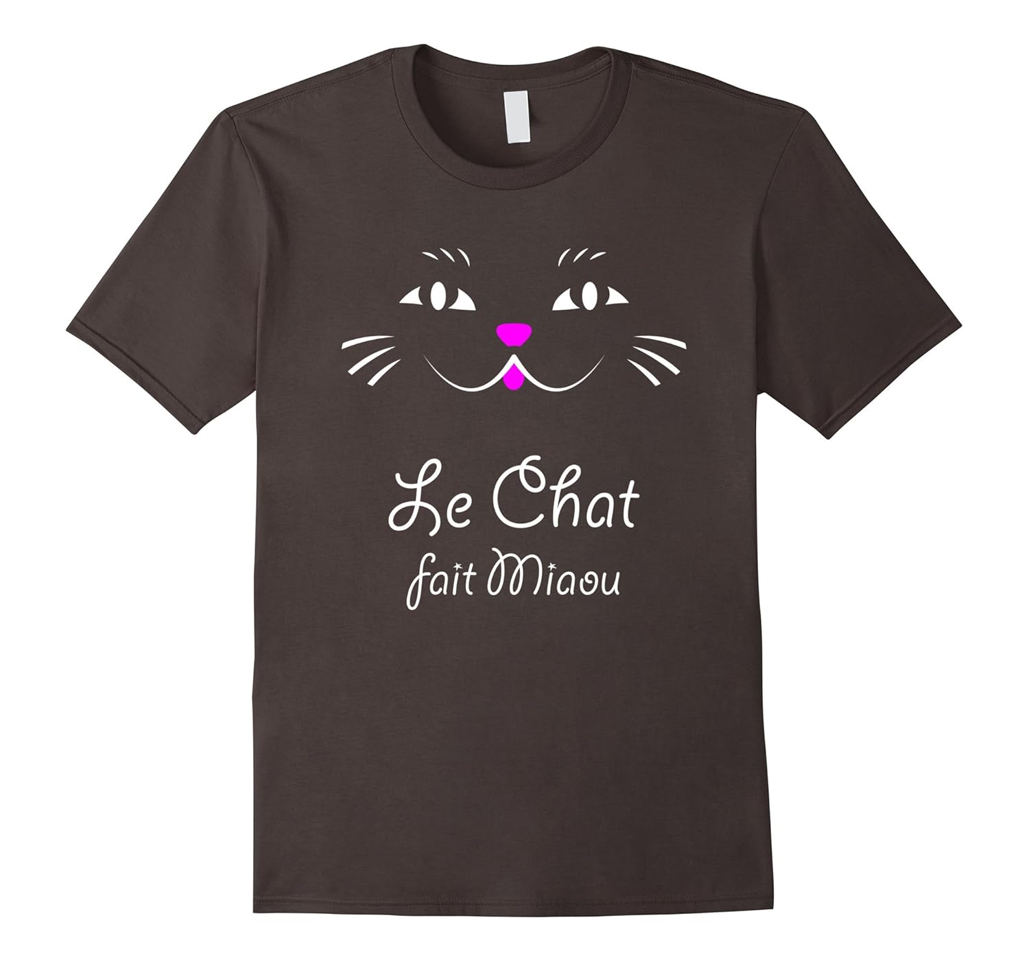 Solid colors: 100% Cotton; Heather Grey: 90% Cotton, 10% Polyester; All Other Heathers: 65% Cotton, 35% Polyester, Imported, Machine wash cold with like colors, dry low heat, Funny French T-shirt with the Words “That Cat Says Meow”, For Cat lovers, Veterinarians, French students – In French Cats say Miaou!, Lightweight, Classic fit, Double-needle sleeve and bottom hem