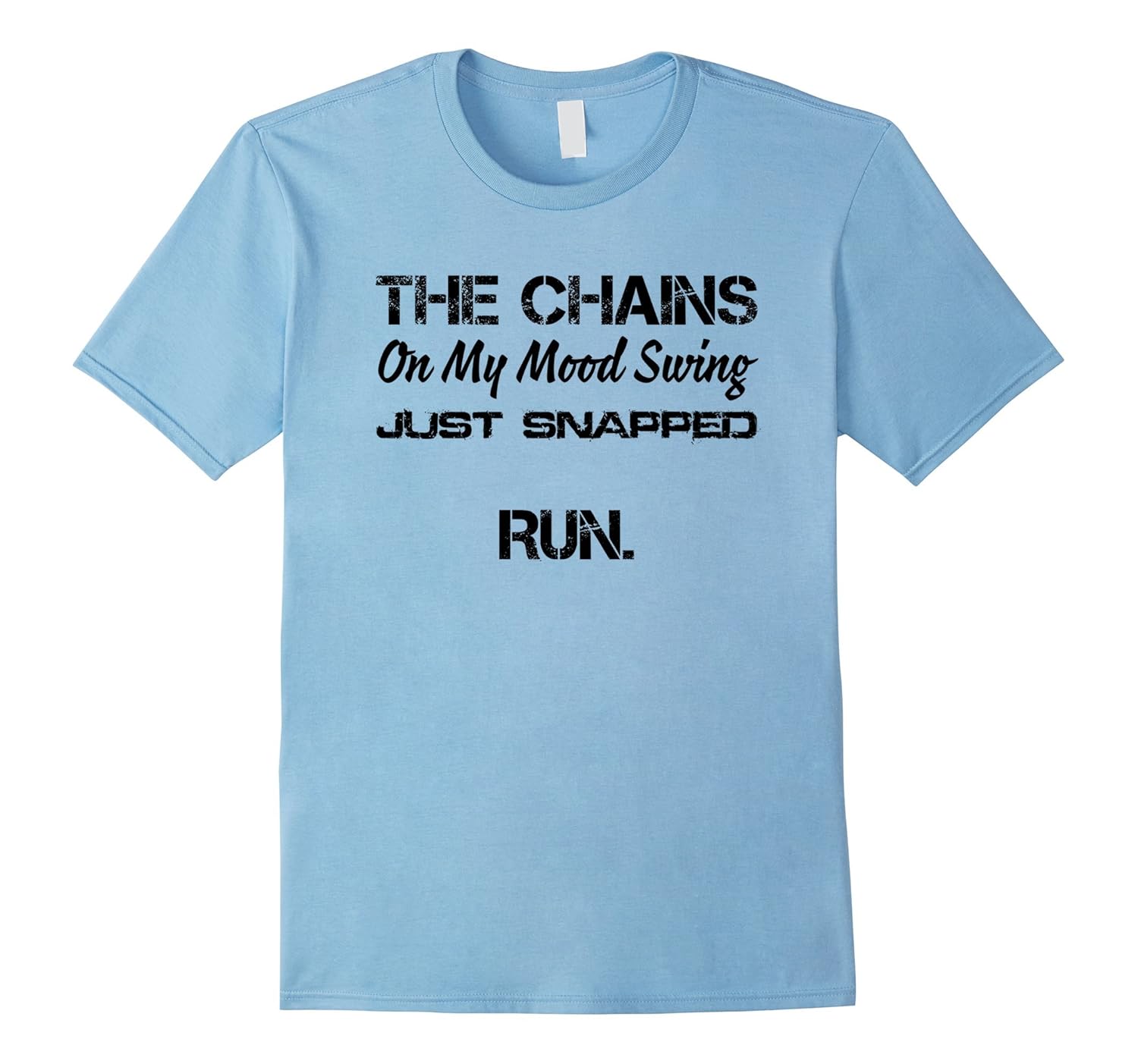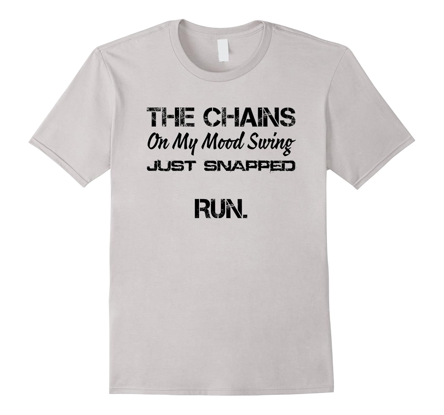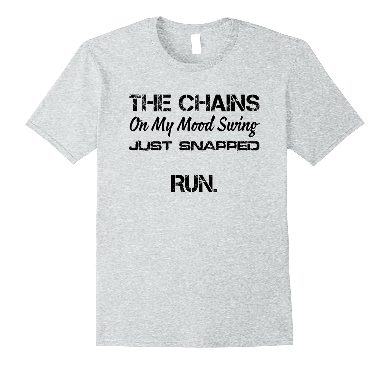 Solid colors: 100% Cotton; Heather Grey: 90% Cotton, 10% Polyester; All Other Heathers: 65% Cotton, 35% Polyester, Imported, Machine wash cold with like colors, dry low heat, The Chains On My Mood Swing Just Snapped Run T Shirt, Lightweight, Classic fit, Double-needle sleeve and bottom hem