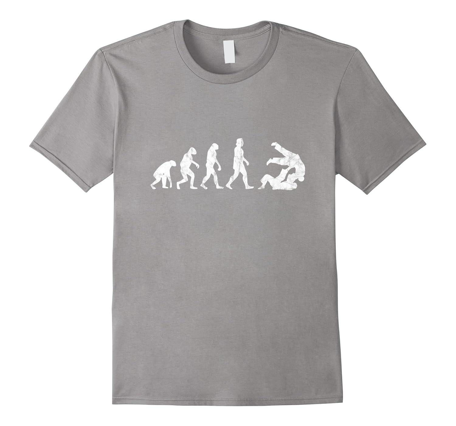Solid colors: 100% Cotton; Heather Grey: 90% Cotton, 10% Polyester; All Other Heathers: 65% Cotton, 35% Polyester, Imported, Machine wash cold with like colors, dry low heat, This funny distressed tee shirt features the evolution of man performing a judo throw. Perfect for men, women, and kids who train and practice brazilian jiu jitsu. Makes a great birthday gift or Christmas present for friends and family, especially fighters who are into martial art. These shirts are slim fit; please size up for a looser fit. Lightweight, Classic fit, Double-needle sleeve and bottom hem