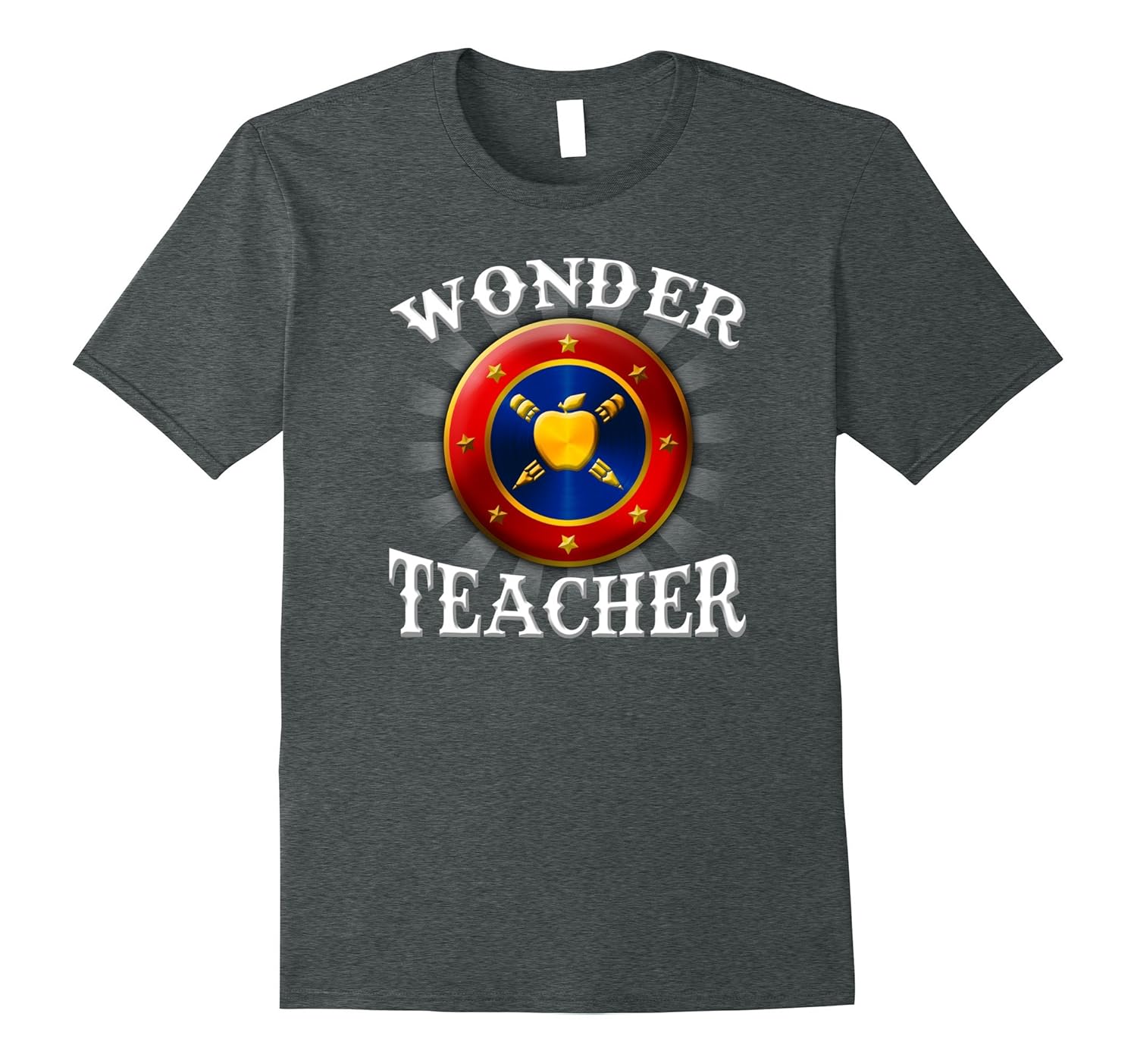Solid colors: 100% Cotton; Heather Grey: 90% Cotton, 10% Polyester; All Other Heathers: 65% Cotton, 35% Polyester; Imported; Machine wash cold with like colors, dry low heat; Teachers truly are the 8th wonder of the world! Featuring the great teachers golden apple, this Wonder Teacher shirt is sure to be an instant hit among friends, family, and co-workers. Snag yours today! Makes a great gift for Teacher Appreciation Day!; The Official WONDER TEACHER Funny Superhero T-shirt is designed and printed to be fitted. For a more baggy fit, please order a size up. Makes the perfect gift for that superhero Teacher in your life! Also a great Halloween Costume!; Lightweight, Classic fit, Double-needle sleeve and bottom hem