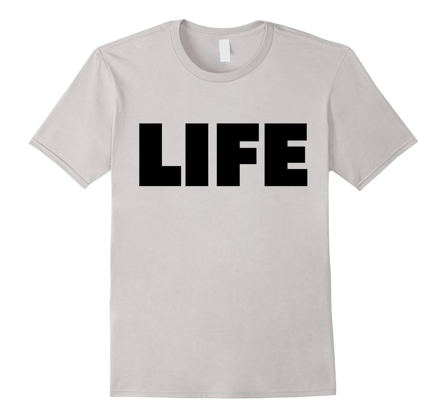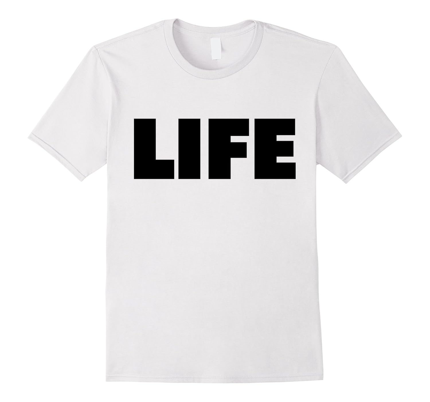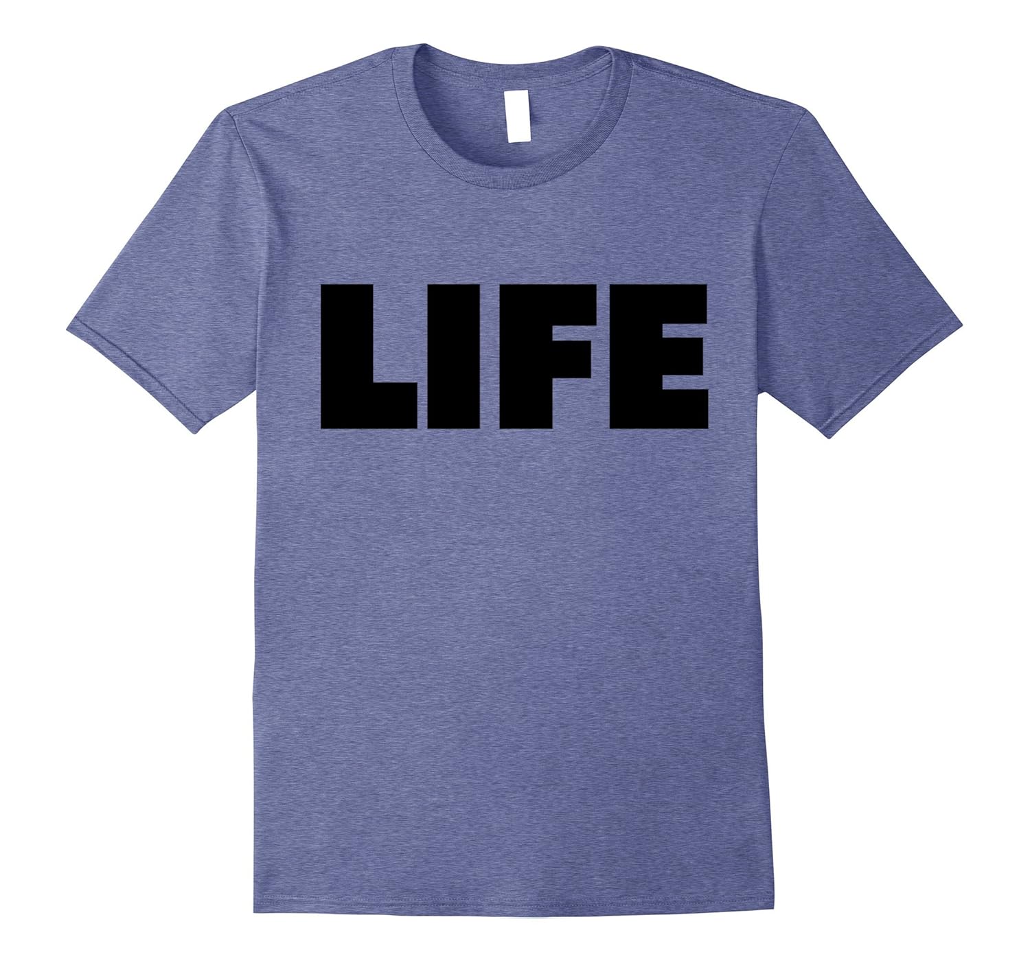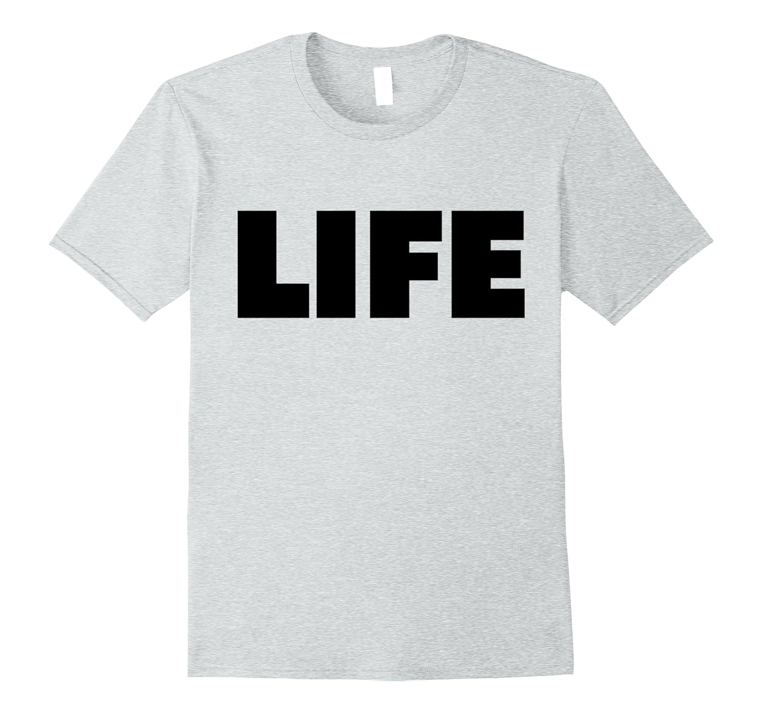 Solid colors: 100% Cotton; Heather Grey: 90% Cotton, 10% Polyester; All Other Heathers: 65% Cotton, 35% Polyester, Imported, Machine wash cold with like colors, dry low heat, This t-shirt features the word life in bold simple letters. Please order this life design a size up if you prefer a loose fit. Lightweight, Classic fit, Double-needle sleeve and bottom hem