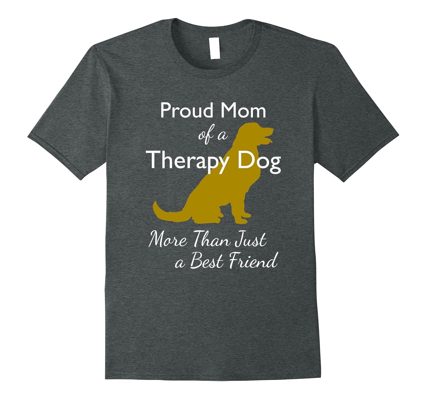 Solid colors: 100% Cotton; Heather Grey: 90% Cotton, 10% Polyester; All Other Heathers: 65% Cotton, 35% Polyester; Imported; Machine wash cold with like colors, dry low heat; Proud Mom of a Therapy Dog, More Than Just A Best Friend. Not just pet or companion, you bring your highly trained therapy dog to volunteer at schools, hospitals, hospice, nursing homes to improve the lives of children, patients, elderly.; Therapy dog tee, therapy dog mom tshirt, service dog shirt, therapy volunteer tee, emotional support dog tshirt for the best dog moms who raise good canine citizens Andamp; share puppy joy with others. Honor your furry four paw friend with this therapy dog shirt; Lightweight, Classic fit, Double-needle sleeve and bottom hem