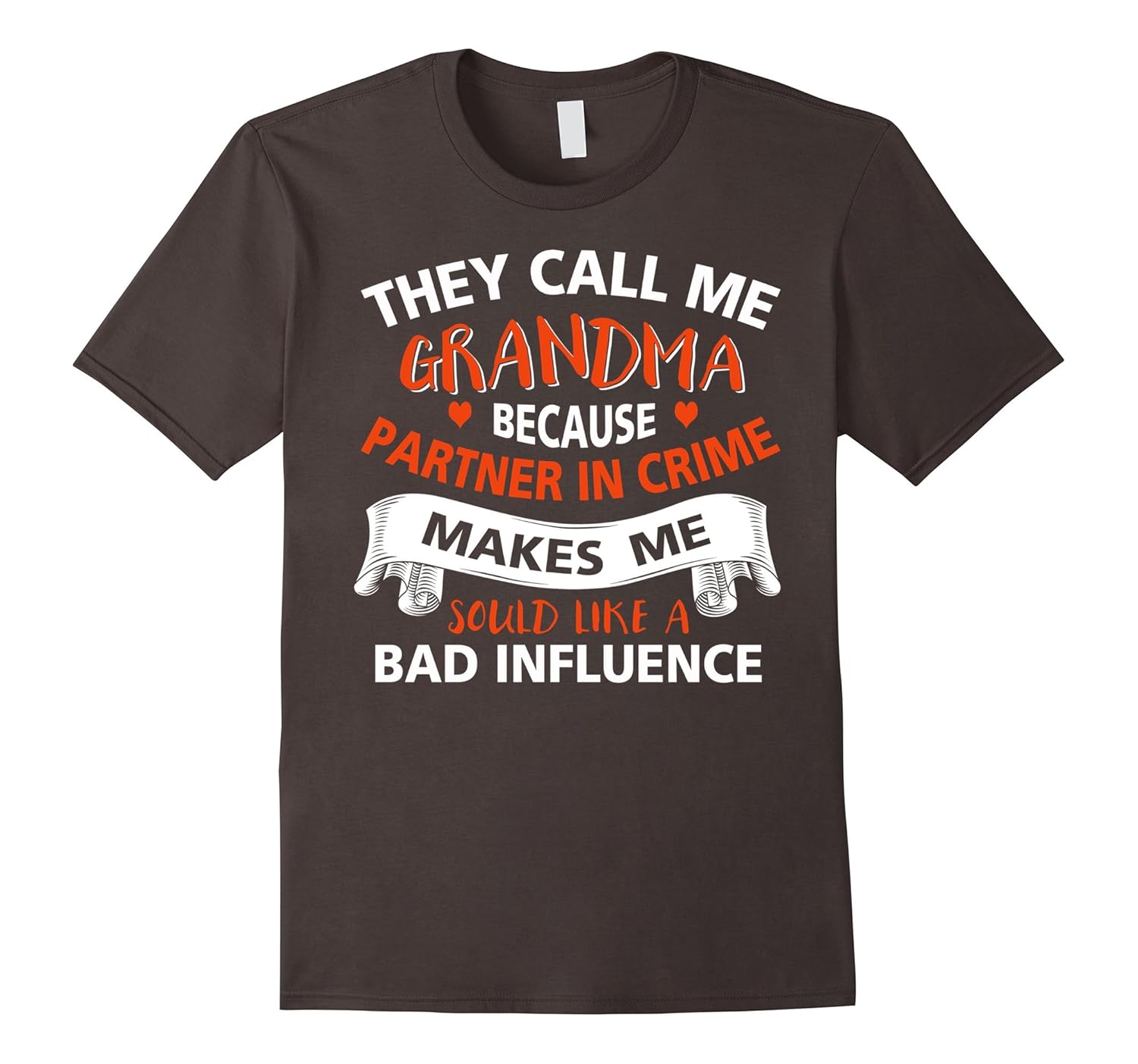 Solid colors: 100% Cotton; Heather Grey: 90% Cotton, 10% Polyester; All Other Heathers: 65% Cotton, 35% Polyester; Imported; Machine wash cold with like colors, dry low heat; They Call Me Grandma Because Partner In Crime Makes Me Sound Like A Bad Influence.; Grandma t shirt, best Grandma ever t shirt, christmas gift for Grandma; Lightweight, Classic fit, Double-needle sleeve and bottom hem