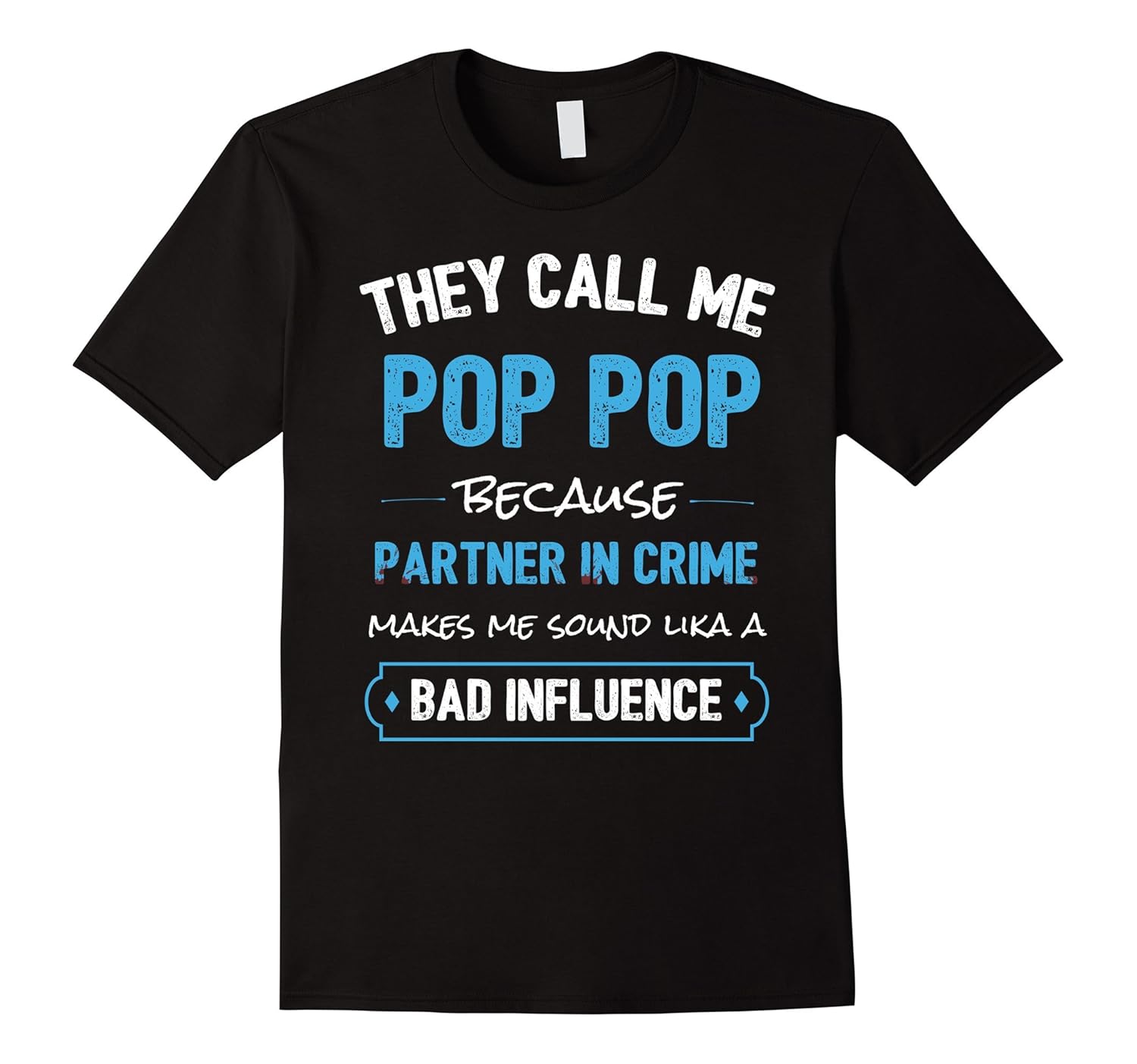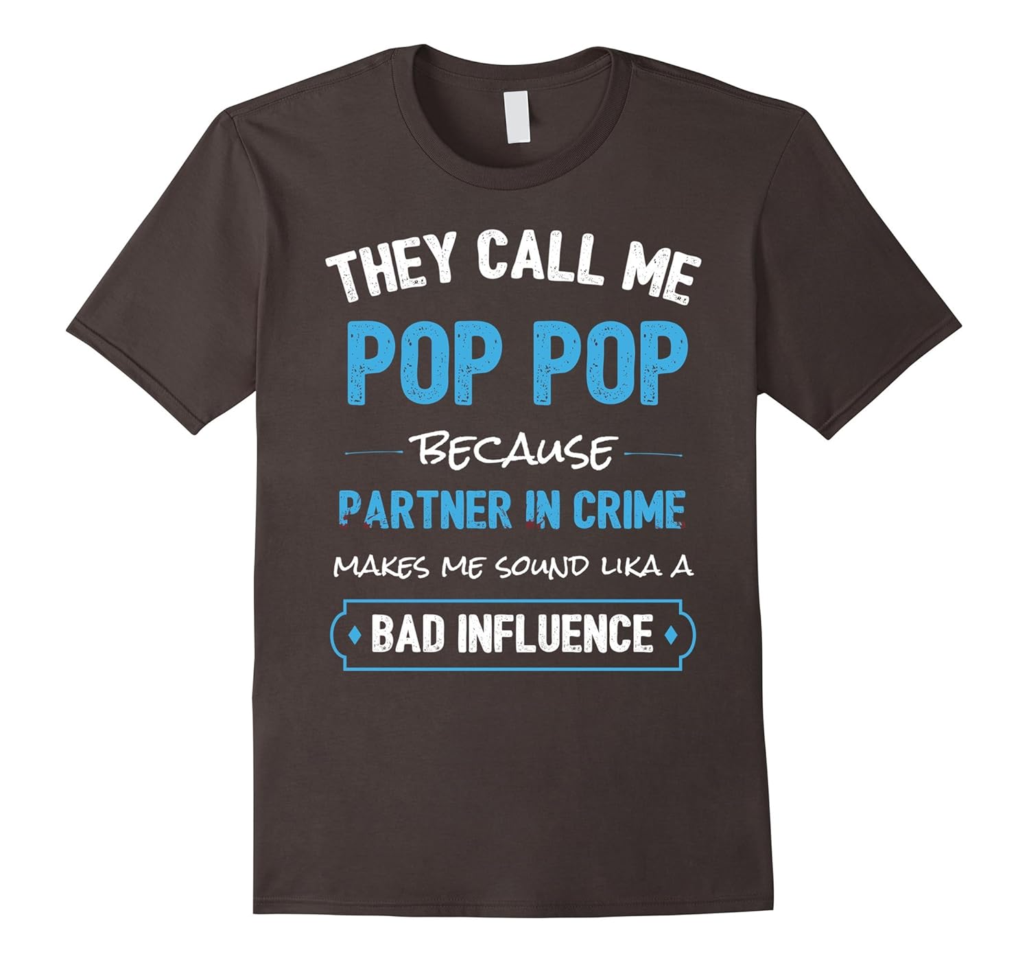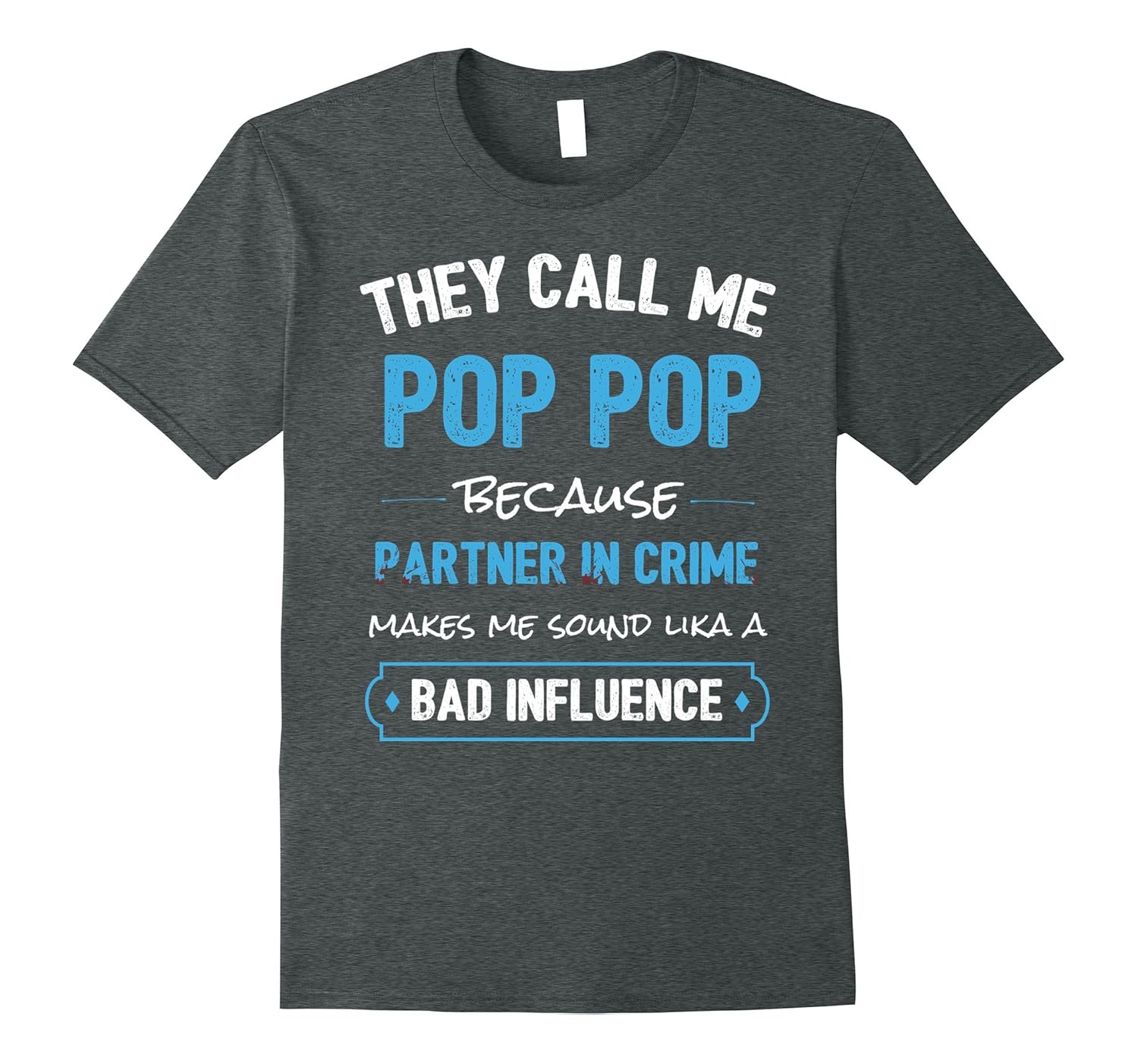 Solid colors: 100% Cotton; Heather Grey: 90% Cotton, 10% Polyester; All Other Heathers: 65% Cotton, 35% Polyester, Imported, Machine wash cold with like colors, dry low heat, This funny tshirt is a great gift idea for your grandpa who is the best one ever. Show your love with this cute slogan tee and buy it for your papa for his birthday, grandfather”s day or as a Christmas present. Perfect grandad t shirt for a family holiday. This cool tee featuring “They Call Me Pop Pop Because Partner In Crime Makes Me Sound Like A Bad Influence” as a great choice for your best grand daddy. He can wear it to work, family reunion, Christmas party or every day. Lightweight, Classic fit, Double-needle sleeve and bottom hem