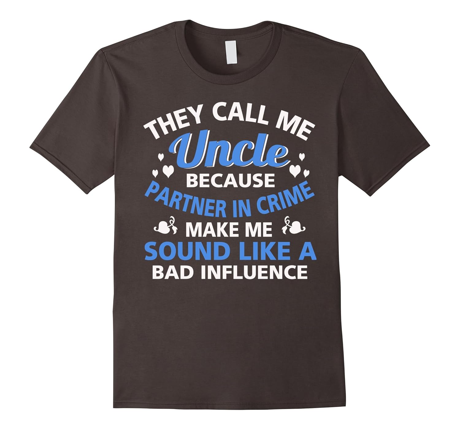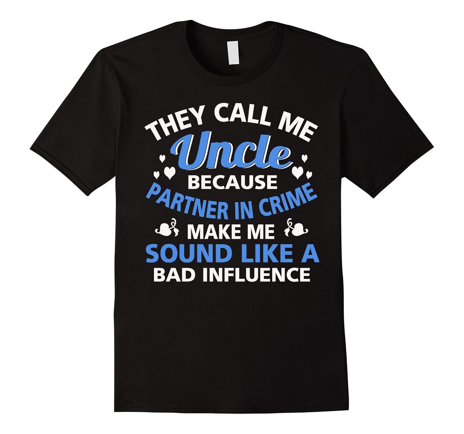 Solid colors: 100% Cotton; Heather Grey: 90% Cotton, 10% Polyester; All Other Heathers: 65% Cotton, 35% Polyester, Imported, Machine wash cold with like colors, dry low heat, They Call Me Uncle Because Partner In Crime Make Me Sound Like A Bad Influence T-Shirt, chrismas gift for uncle tshirts, Lightweight, Classic fit, Double-needle sleeve and bottom hem