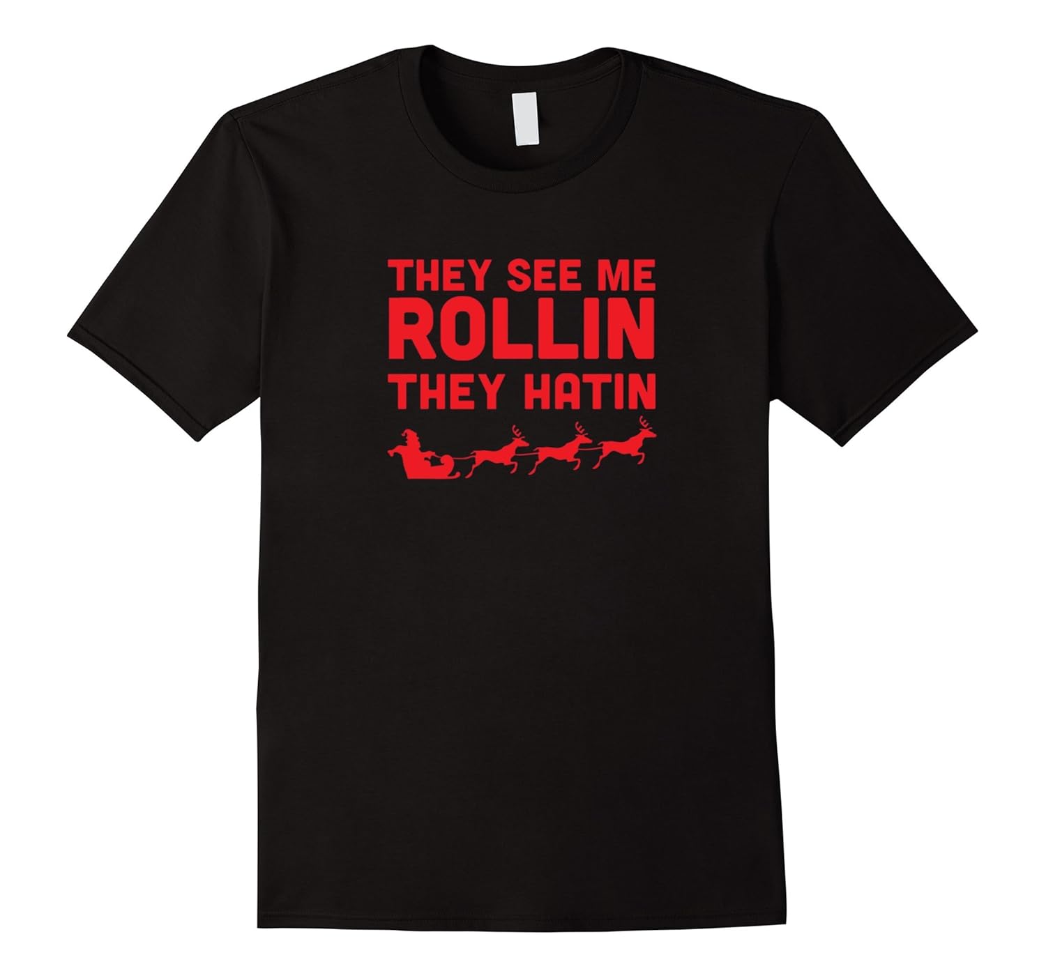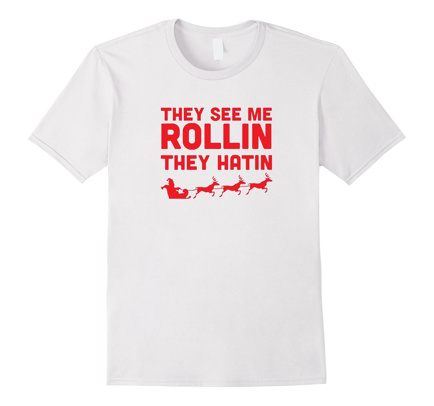 Solid colors: 100% Cotton; Heather Grey: 90% Cotton, 10% Polyester; All Other Heathers: 65% Cotton, 35% Polyester; Imported; Machine wash cold with like colors, dry low heat; They See Me Rollin Funny Christmas T-Shirt. Humour, Merry Christmas, X-mas, Happy Holidays Shirt. Humorous Xmas, Stocking, Parody, Hipster Tee.; This tee is great to wear to a Christmas party! This hilarious Christmas shirt makes a great Christmas gift for mom, dad, husband, wife, brother, uncle, friend or anyone else!; Lightweight, Classic fit, Double-needle sleeve and bottom hem