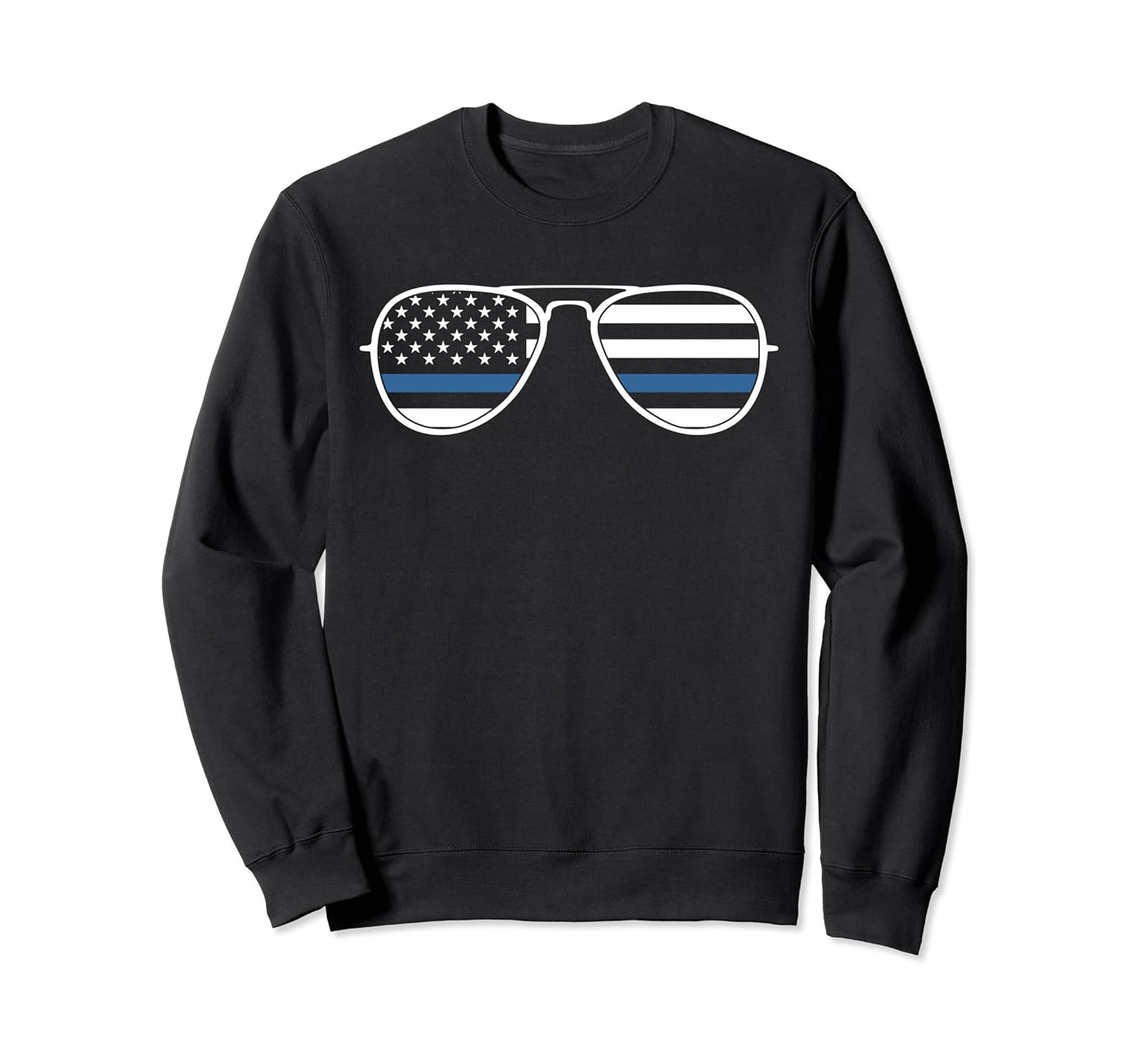 Thin Blue Line Sweatshirt Sunglasses American Flag Police-anz