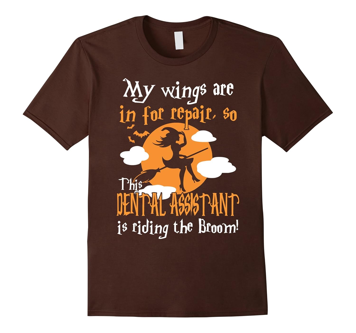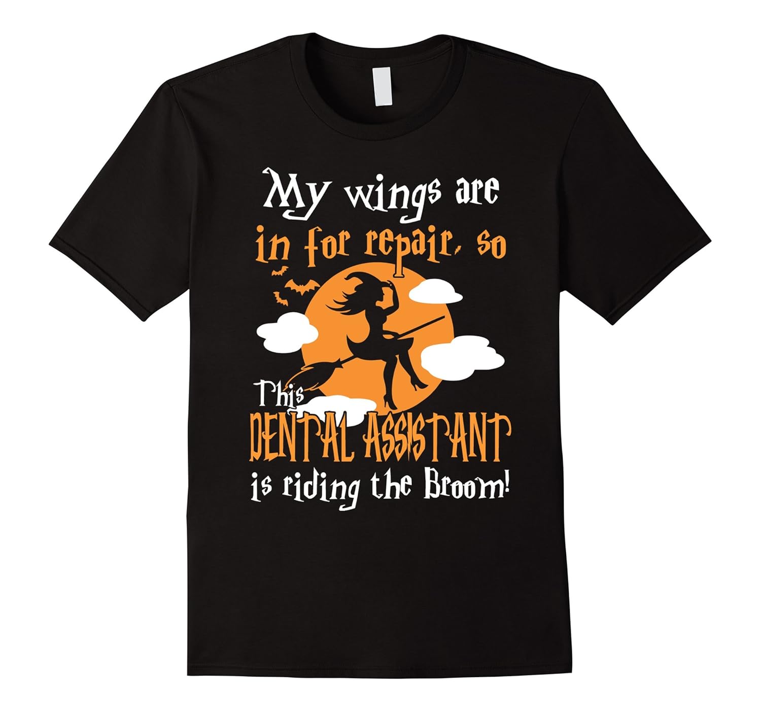 Solid colors: 100% Cotton; Heather Grey: 90% Cotton, 10% Polyester; All Other Heathers: 65% Cotton, 35% Polyester, Imported, Machine wash cold with like colors, dry low heat, Wings Are In For Repair So This Dental Assistant Riding The Broom Halloween Tshirt, Lightweight, Classic fit, Double-needle sleeve and bottom hem