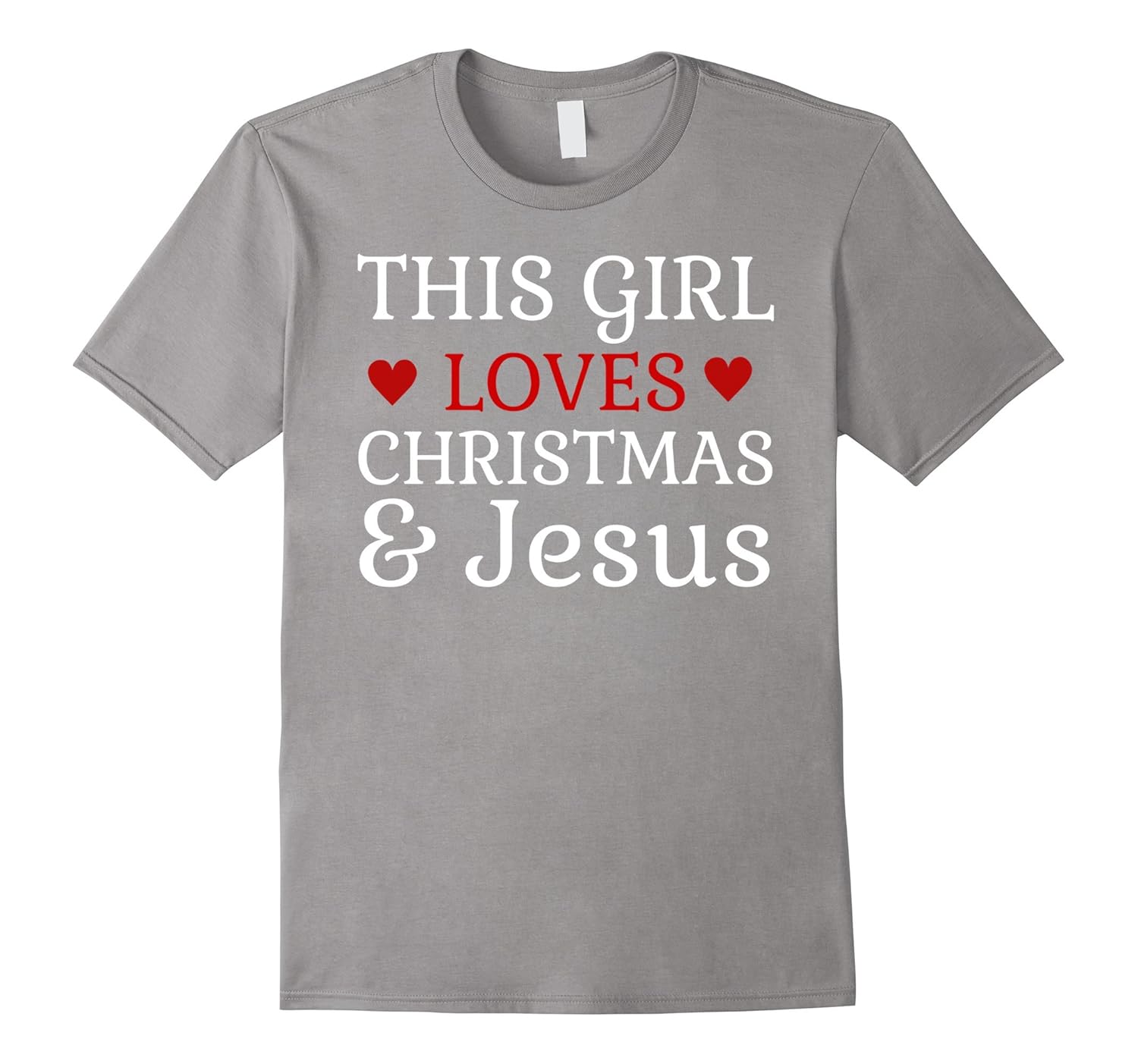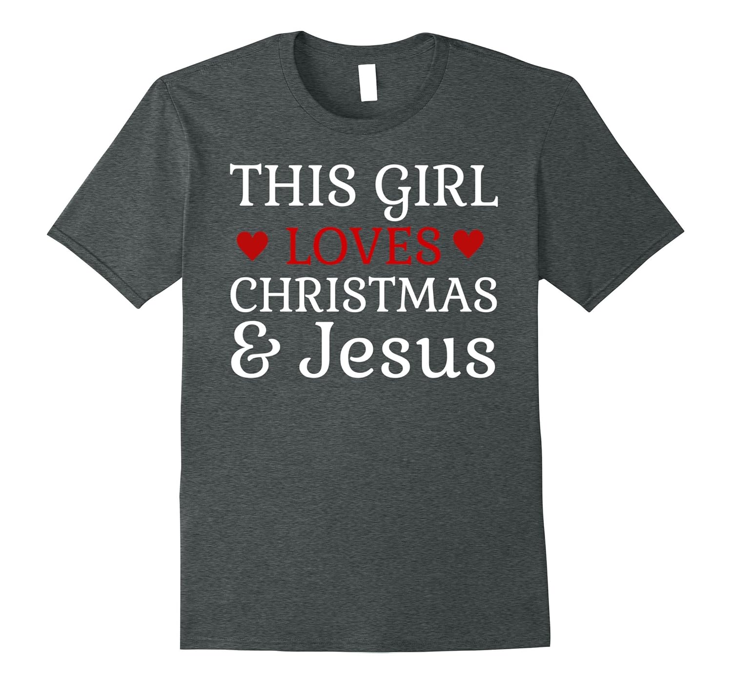 Solid colors: 100% Cotton; Heather Grey: 90% Cotton, 10% Polyester; All Other Heathers: 65% Cotton, 35% Polyester; Imported; Machine wash cold with like colors, dry low heat; This Girl Loves Christmas and Jesus Holiday Tee. Great Christian or religious, Church, Christmas tee.; Cute Tee for all Christmas Lovers and Also makes a great Christmas present! Spread the Holiday Cheer! Merry Christmas. Wear this on Christmas Eve or Morning. Festive Xmas Tee. Christmas themed shirt; Lightweight, Classic fit, Double-needle sleeve and bottom hem
