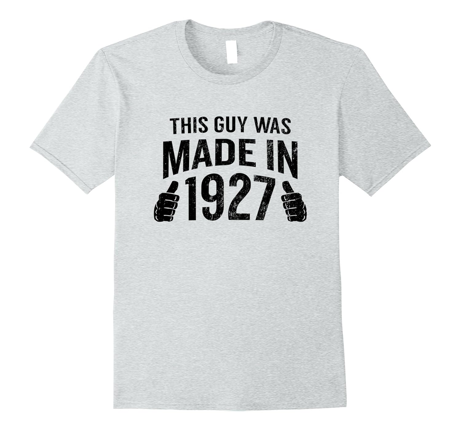 Solid colors: 100% Cotton; Heather Grey: 90% Cotton, 10% Polyester; All Other Heathers: 65% Cotton, 35% Polyester, Imported, Machine wash cold with like colors, dry low heat, This Guy Was Made in 1927 is an awesome, funny, novelty vintage tee for those turning 90 years old! You”ll love wearing this distressed, retro style outfit with a hand gesture of thumbs pointing up that will get you lots of compliments and; good laughs!, The best 90th birthday gift idea, Father”s Day, a fun Christmas present or Halloween costume for your amazing boy! Your grandpa, dad, son, brother or uncle will love wearing this hilarious, sarcastic tshirt and; to parties, events and; family gatherings!, Lightweight, Classic fit, Double-needle sleeve and bottom hem