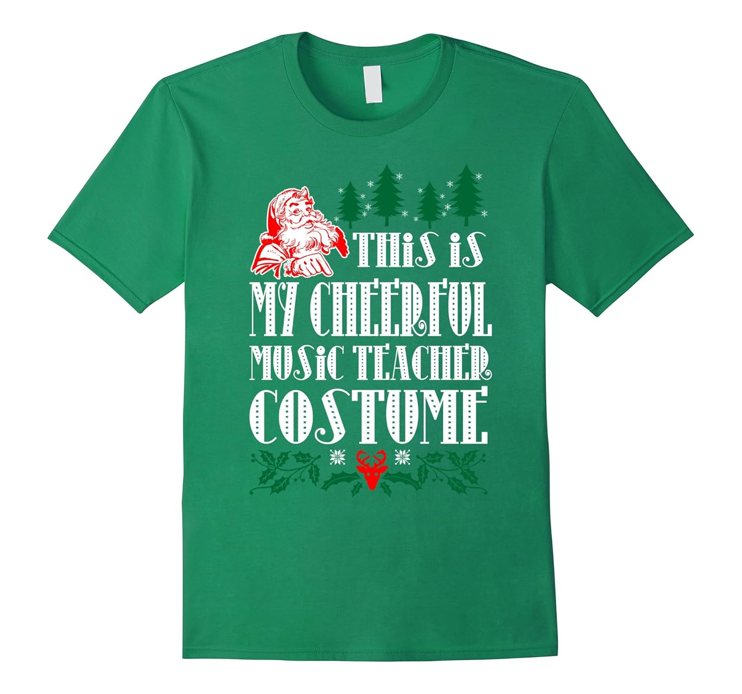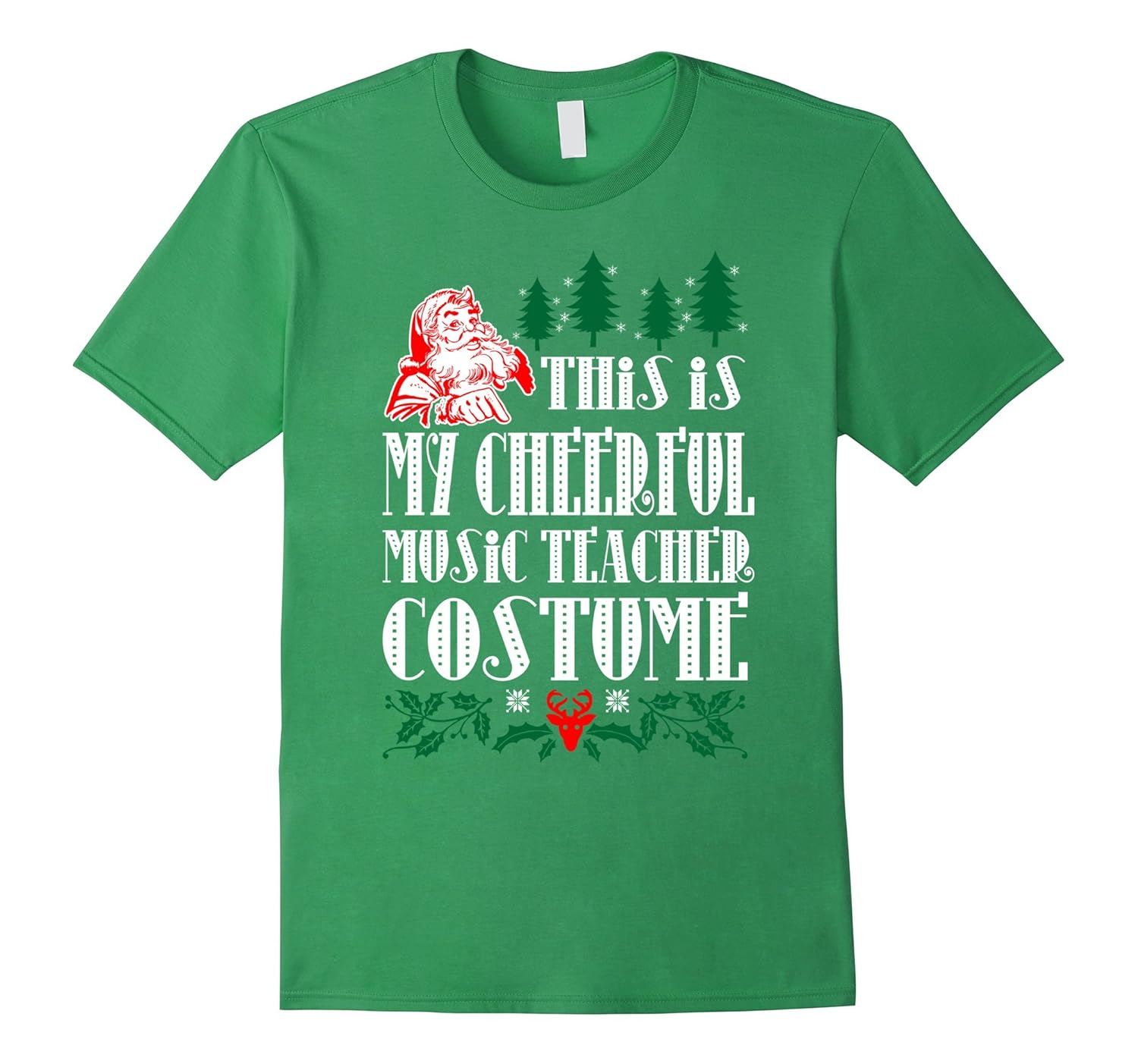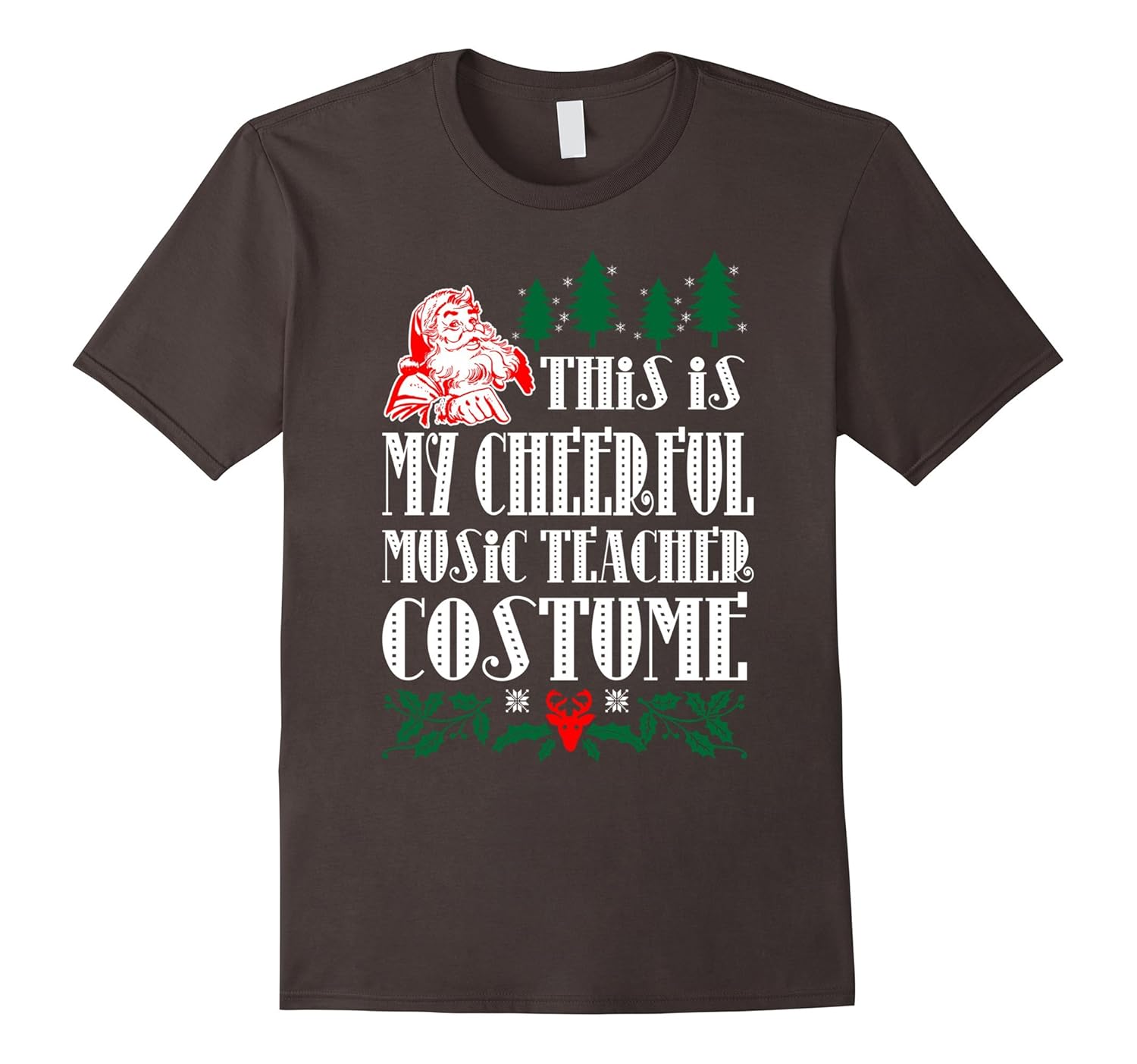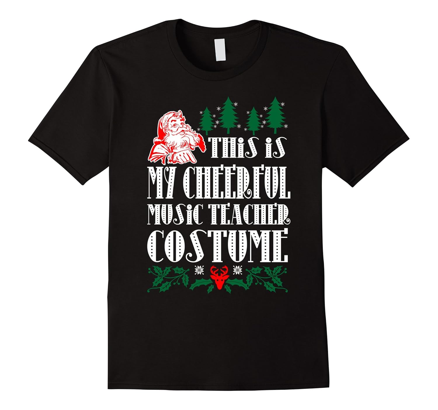 Solid colors: 100% Cotton; Heather Grey: 90% Cotton, 10% Polyester; All Other Heathers: 65% Cotton, 35% Polyester; Imported; Machine wash cold with like colors, dry low heat; This Is My Cheerful Music Teacher Costume Christmas Tshirt; Lightweight, Classic fit, Double-needle sleeve and bottom hem