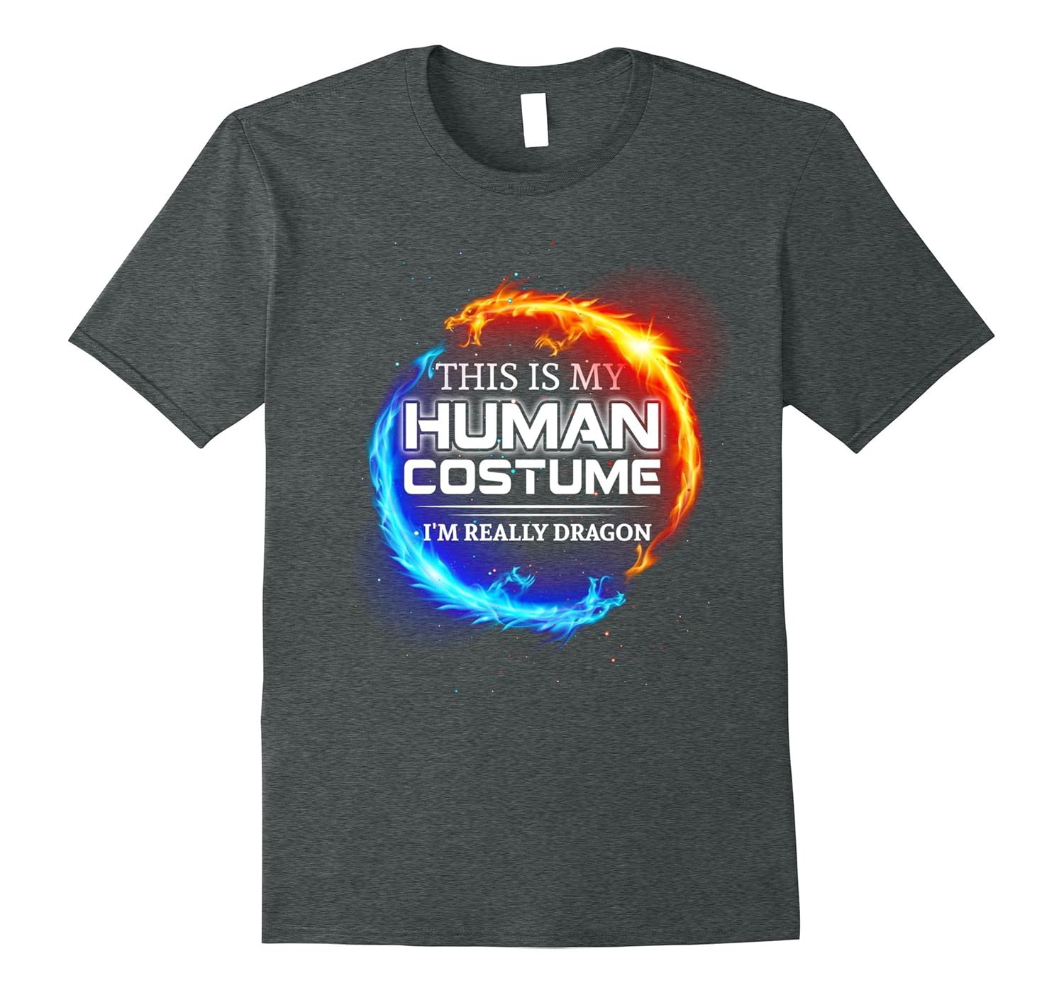 Solid colors: 100% Cotton; Heather Grey: 90% Cotton, 10% Polyester; All Other Heathers: 65% Cotton, 35% Polyester, Imported, Machine wash cold with like colors, dry low heat, This Is My Human Costume I Am Really a Dragon Halloween T-Shirt. Lightweight, Classic fit, Double-needle sleeve and bottom hem