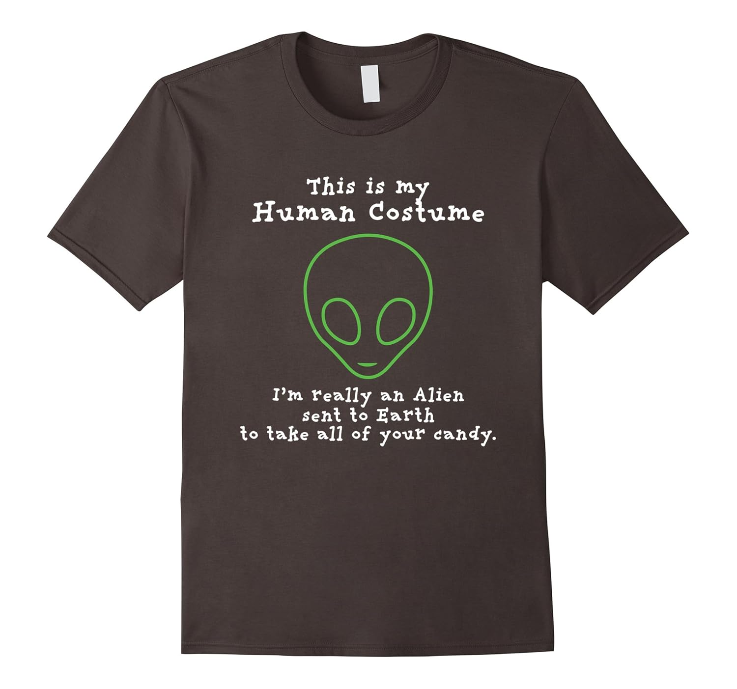 Solid colors: 100% Cotton; Heather Grey: 90% Cotton, 10% Polyester; All Other Heathers: 65% Cotton, 35% Polyester, Imported, Machine wash cold with like colors, dry low heat, “This Is My Human Costume I”m Really An Alien” This funny t-shirt is great gift for men, women, and kids who love alien, Halloween, and candy. Great idea for the last minute funny Halloween costume for your Halloween party. This is a simple costume of an alien sent to Earth for all the candy. Lightweight, Classic fit, Double-needle sleeve and bottom hem