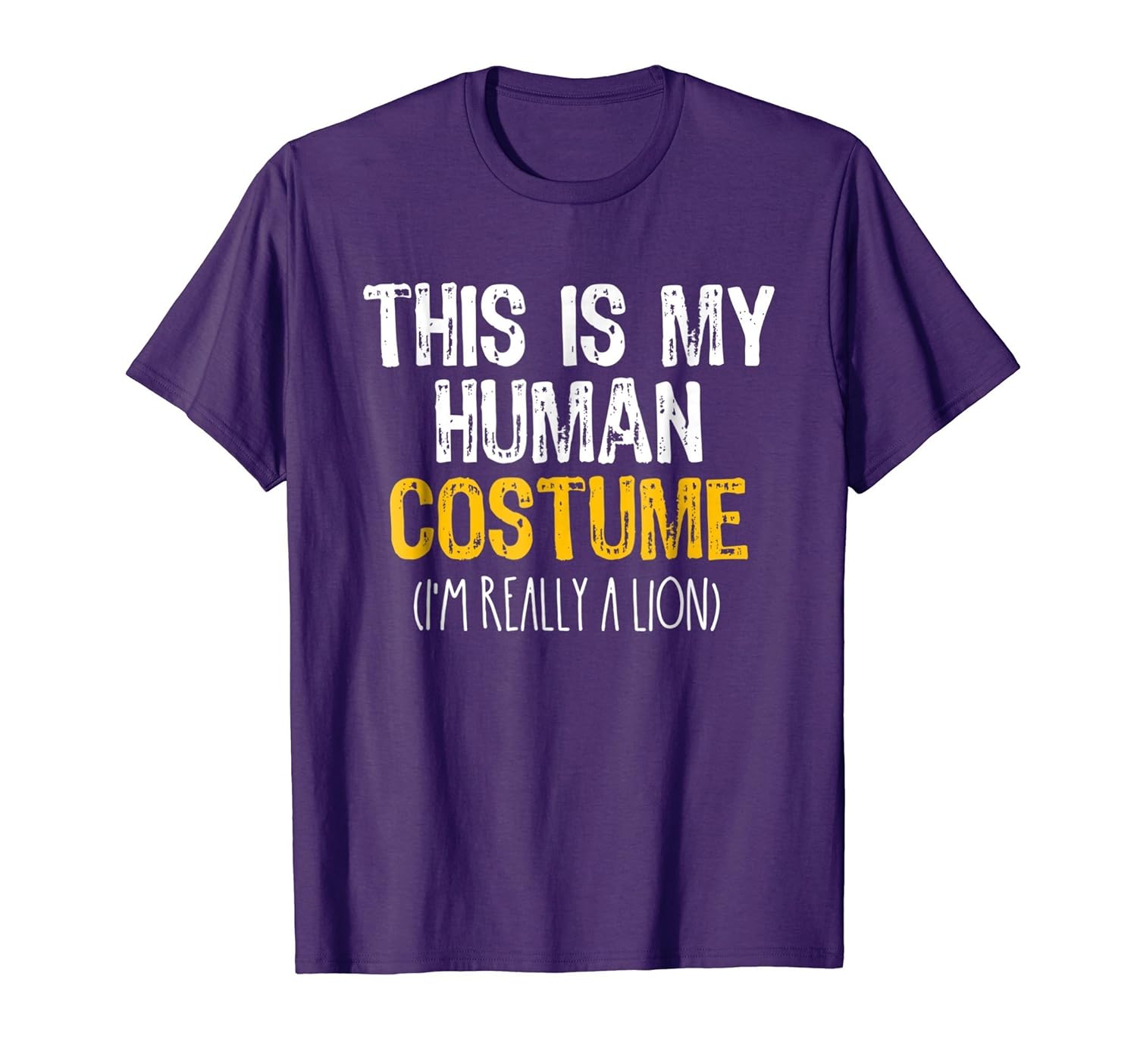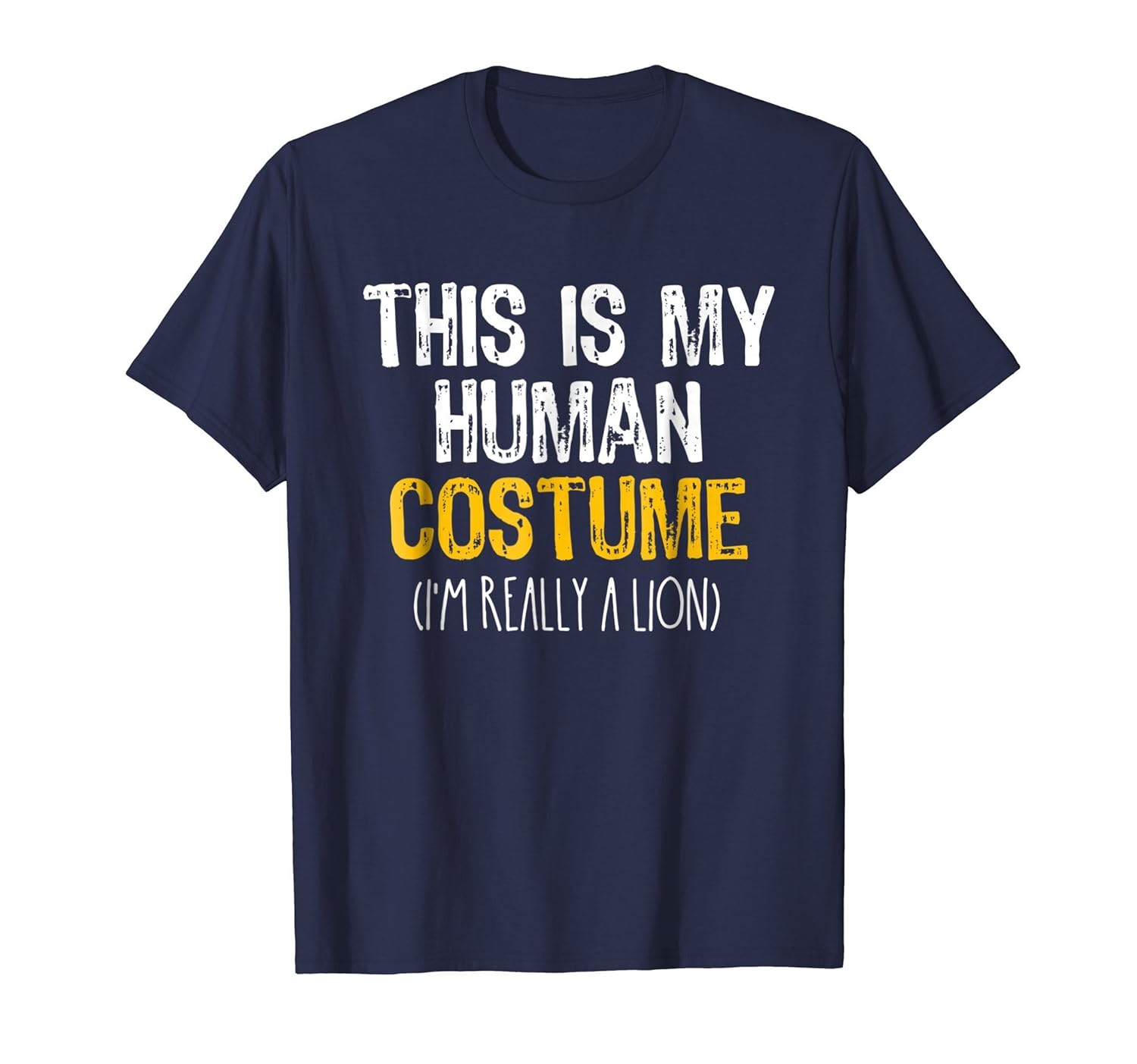 Solid colors: 100% Cotton; Heather Grey: 90% Cotton, 10% Polyester; All Other Heathers: 50% Cotton, 50% Polyester; Imported; Machine wash cold with like colors, dry low heat; this is my human costume im really a lion halloween party scary horror animal lover; quote textual saying cool gift ideas joke funny humor sarcastic; Lightweight, Classic fit, Double-needle sleeve and bottom hem