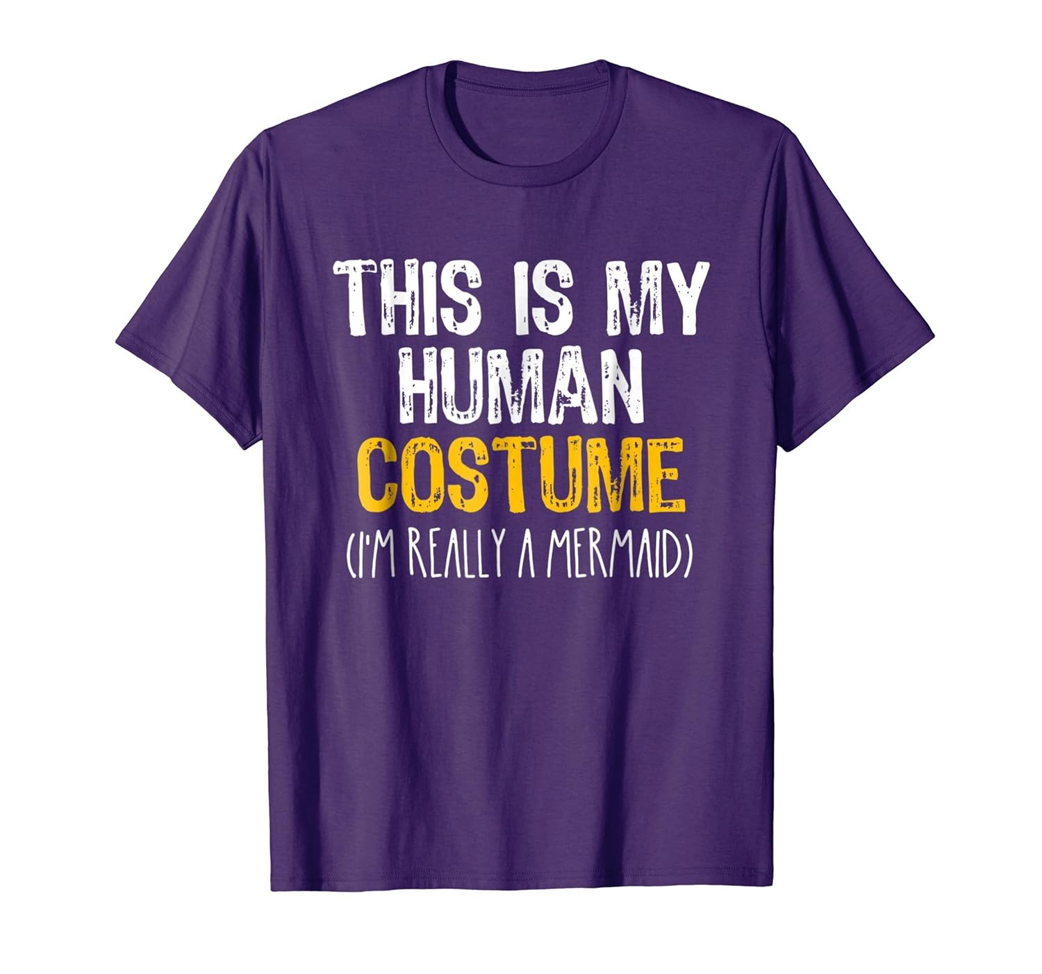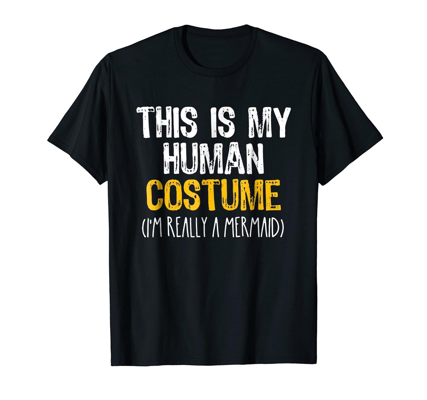 Solid colors: 100% Cotton; Heather Grey: 90% Cotton, 10% Polyester; All Other Heathers: 50% Cotton, 50% Polyester; Imported; Machine wash cold with like colors, dry low heat; this is my human costume im really a mermaid halloween party scary horror lazy fantasy magic ocean fairy; quote textual saying cool gift ideas joke funny humor sarcastic; Lightweight, Classic fit, Double-needle sleeve and bottom hem