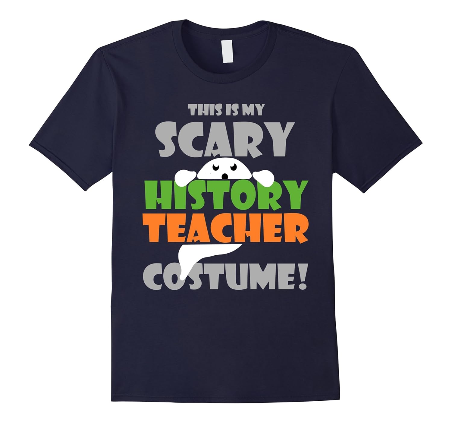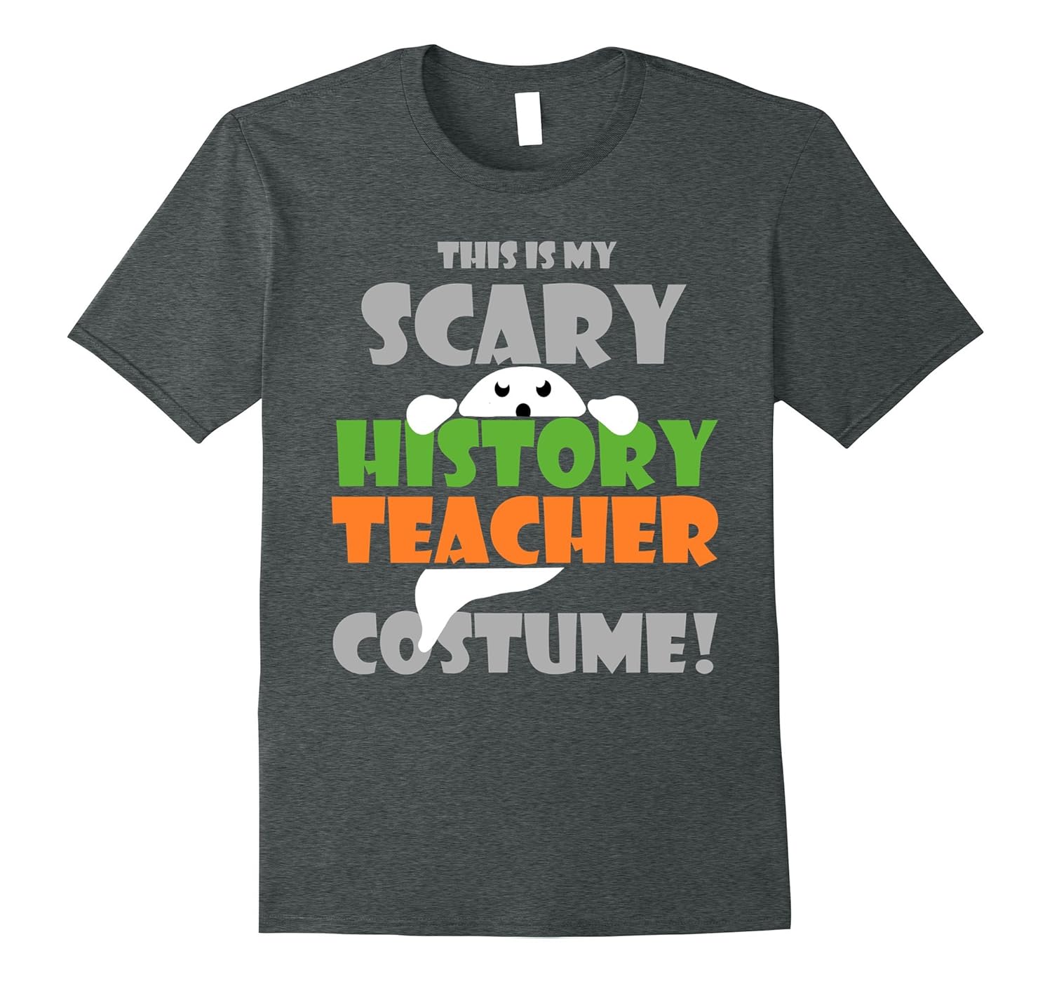 Solid colors: 100% Cotton; Heather Grey: 90% Cotton, 10% Polyester; All Other Heathers: 65% Cotton, 35% Polyester; Imported; Machine wash cold with like colors, dry low heat; Celebrate the Spooky and Fun Holiday of Halloween this Year at School with this Trendy Tee! Perfect for Any Teacher who Loves Reading History, Learning about the Past, Social Studies and Archaeology!; Awesome Gift for Your Favorite Teacher! Makes a Cool last minute or quick costume for your School or Work party with co workers, students, friends and family! Features a Ghost and words in the colors Gray, Green and Orange!; Lightweight, Classic fit, Double-needle sleeve and bottom hem