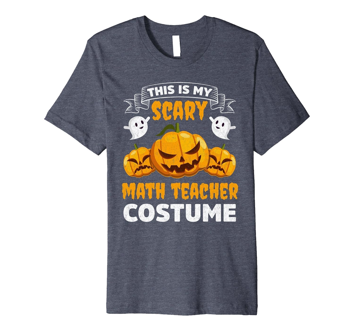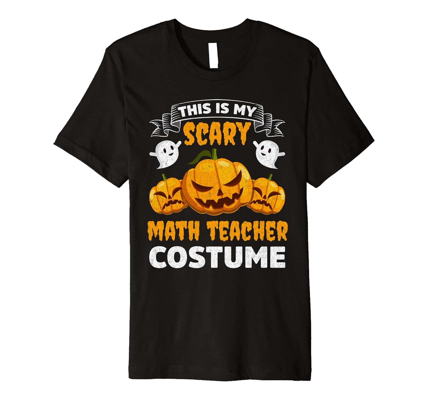 Solid colors: 100% Cotton; Heather Grey: 90% Cotton, 10% Polyester; All Other Heathers: 58% Cotton, 42% Polyester; Imported; Machine wash cold with like colors, dry low heat; This distressed, funny halloween shirt is perfect for math teachers to wear to work. Make your students and co-workers laugh with this hilarious halloween costume shirt. The jack-o-lanterns and ghosts help make this a scary math teacher costume.; Fit: Slim (consider ordering a larger size for a looser fit); Wear this to work parties, parades or on Halloween trick or treating. Let people know you are a proud math teacher this October. Click our brand name for more colors.; This premium t-shirt is made of lightweight fine jersey fabric
