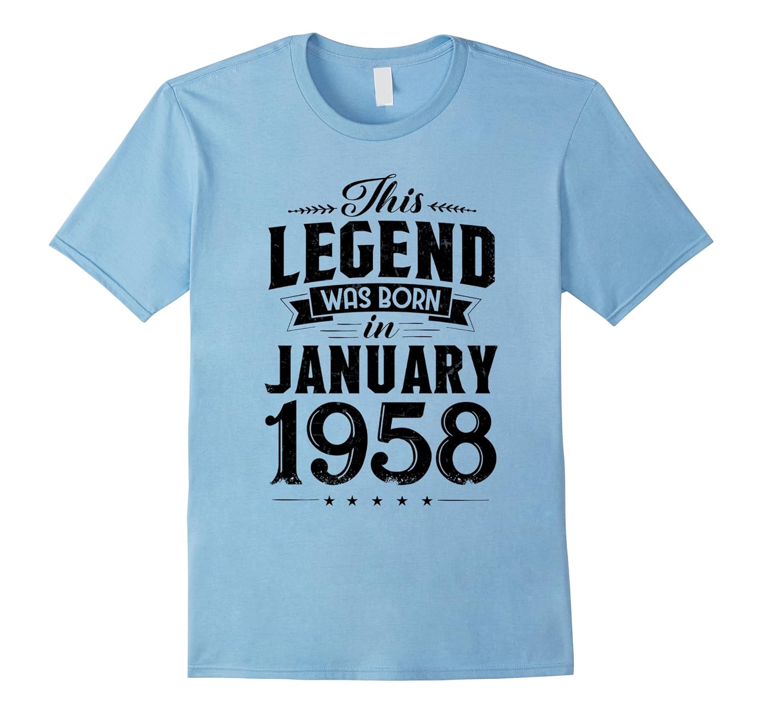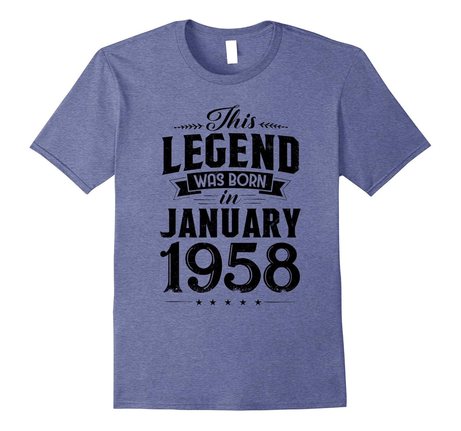 Solid colors: 100% Cotton; Heather Grey: 90% Cotton, 10% Polyester; All Other Heathers: 65% Cotton, 35% Polyester, Imported, Machine wash cold with like colors, dry low heat, An awesome classic vintage retro tee saying This Legend Was Born In January 1958 in distressed weathered style! An amazing, cool tshirt for queens or kings turning sixty years old made in the month of January and; been rocking since ”58!, A great 60th birthday gift idea or a fun Christmas present for legends who are perfectly aged since birth! Get your hands on this funny, sarcastic outfit now and; have your dad, husband, uncle or grandpa wear it proud to parties, events and; family gatherings!, Lightweight, Classic fit, Double-needle sleeve and bottom hem