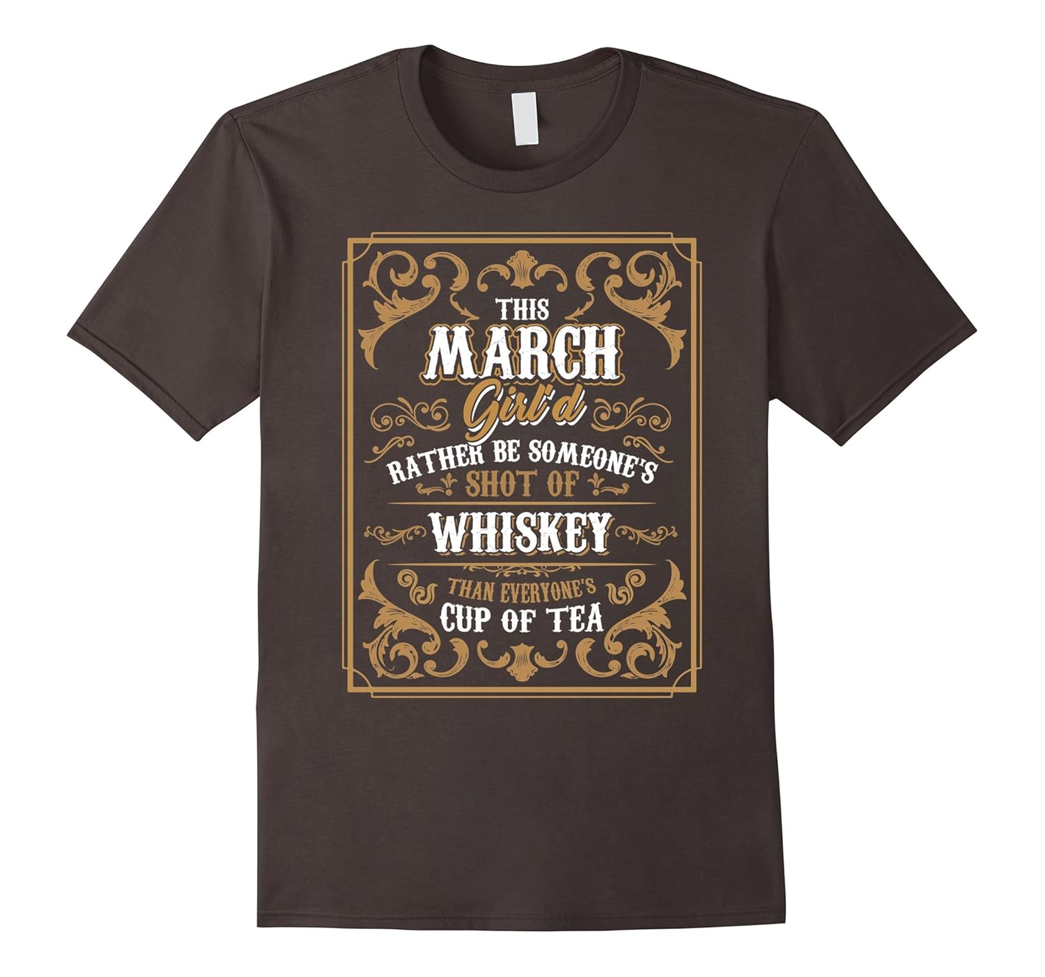 Solid colors: 100% Cotton; Heather Grey: 90% Cotton, 10% Polyester; All Other Heathers: 65% Cotton, 35% Polyester, Imported, Machine wash cold with like colors, dry low heat, This March Girl Would Rather Be Someone”s Shot Of Whiskey Than Everyone”s Cup Of Tea. Funny March birth month T-shirt for your girl who is a Pisces whiskey drinker who loves drinking wine. Make a birthday gift as well for your mother, grandma, sister, aunt, niece, daughter, girlfriend, and wife who was born in March. Love to drink Whiskey and drinking whiskey at party night, clubbing and get drunk. Proud to be a Queen in March. Lightweight, Classic fit, Double-needle sleeve and bottom hem
